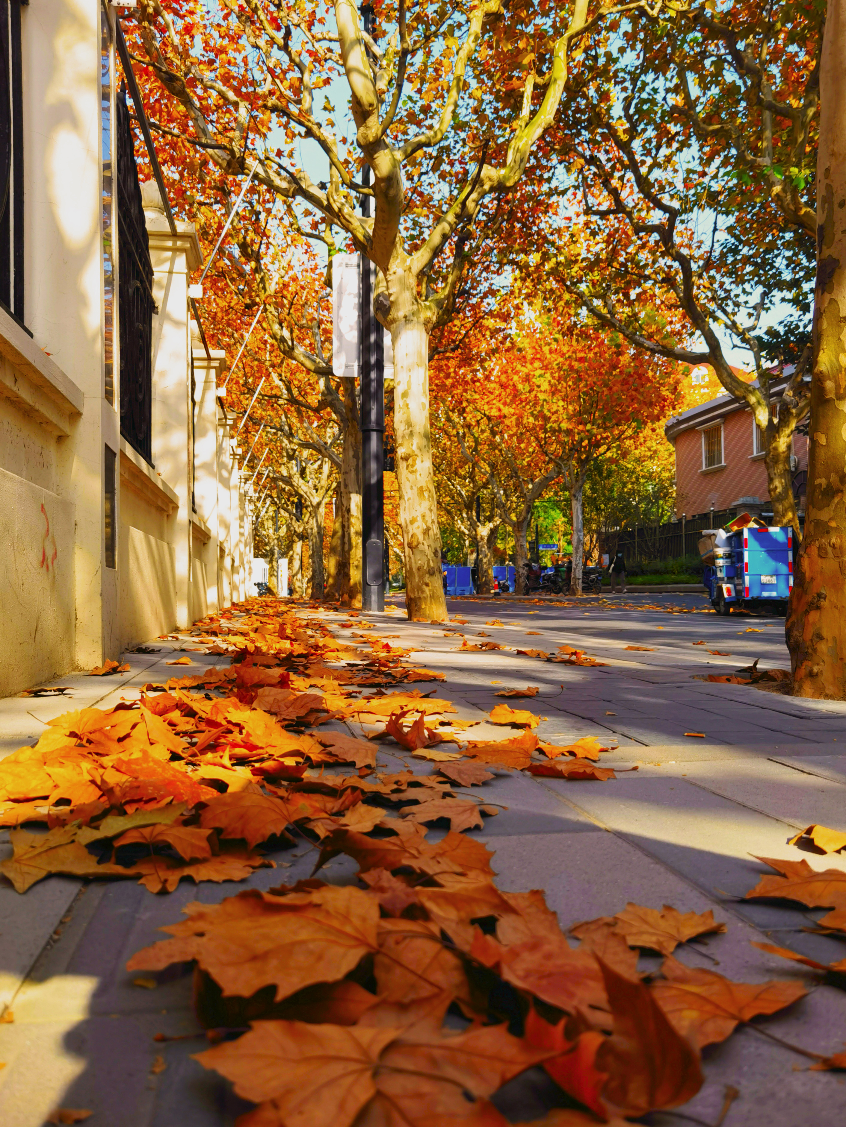 三条特意保留落叶景观的道路,其树种均为悬铃木,又称法国梧桐,享有“行道树之王”的美誉。落叶时节,金黄色的叶片在空中翩翩起舞,缓缓飘落,为大地铺上一层绚烂的金黄。漫步其间,仿佛步入了一个童话世界。一棵棵树木相互交织,枝叶繁茂,共同形成了一条林荫大道。下面,让我们一起重温往年的落叶诗意,循着这份美好,再赴即将到来的金黄之约吧。