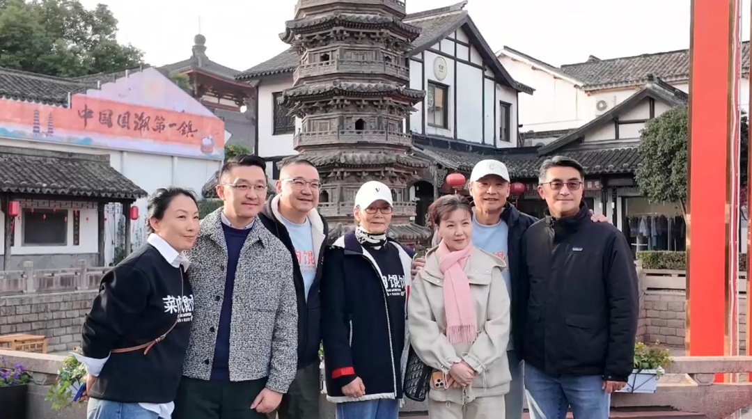 深秋的南翔老街,白墙黛瓦间灯笼高悬,翘角飞檐下银杏纷飞,构成一幅诗意的江南画卷。在导游的介绍下,主创们走过报济桥、南翔双塔、檀园,沉浸于南翔古镇的魅力,时不时拍照留念。