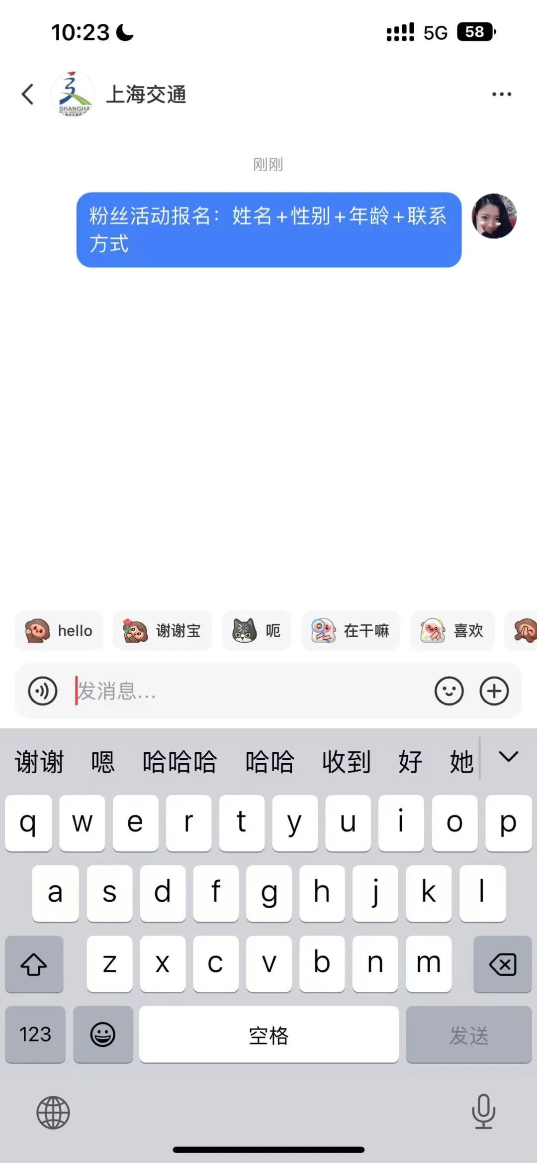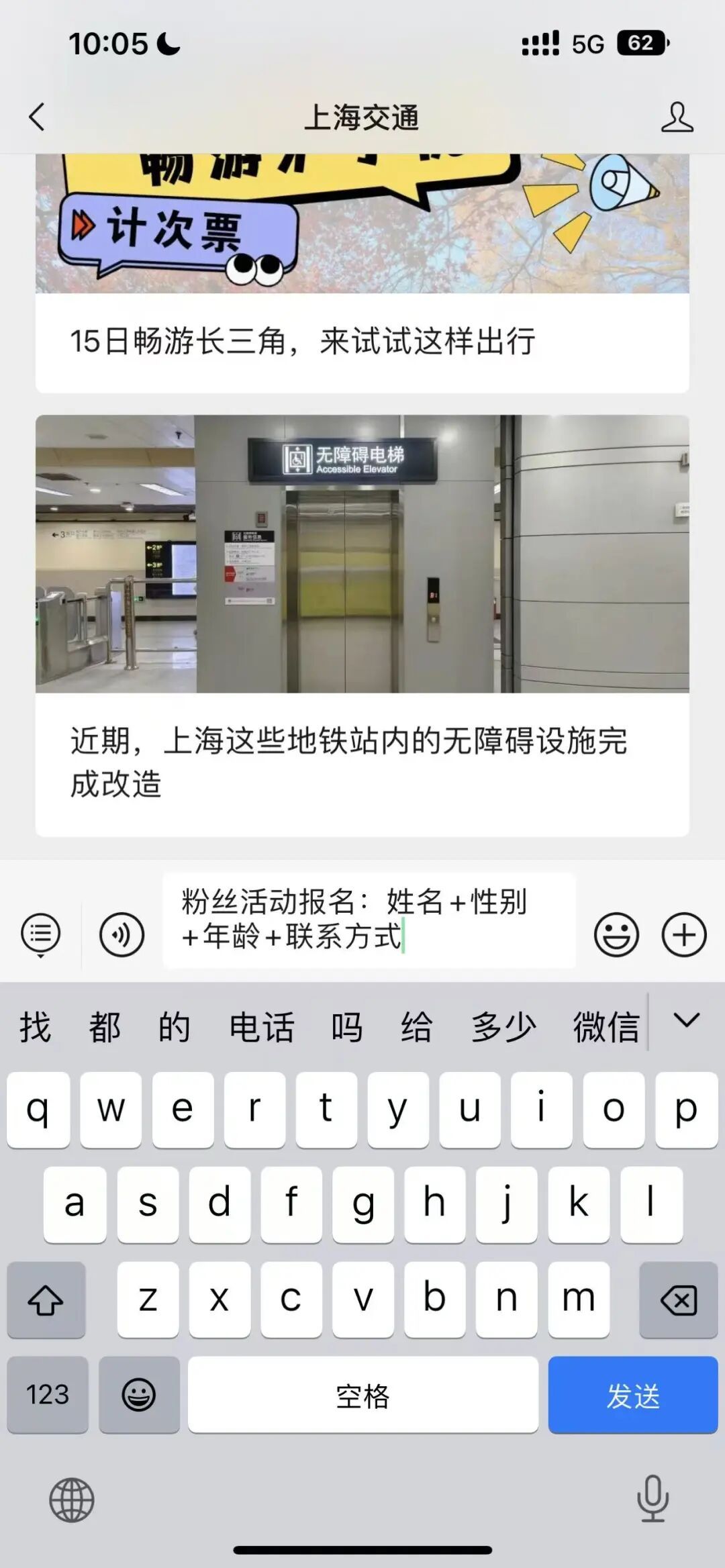 进入小红书APP,关注“上海交通”,通过后台私信,将您的姓名、性别、年龄、联系方式发送给我们。