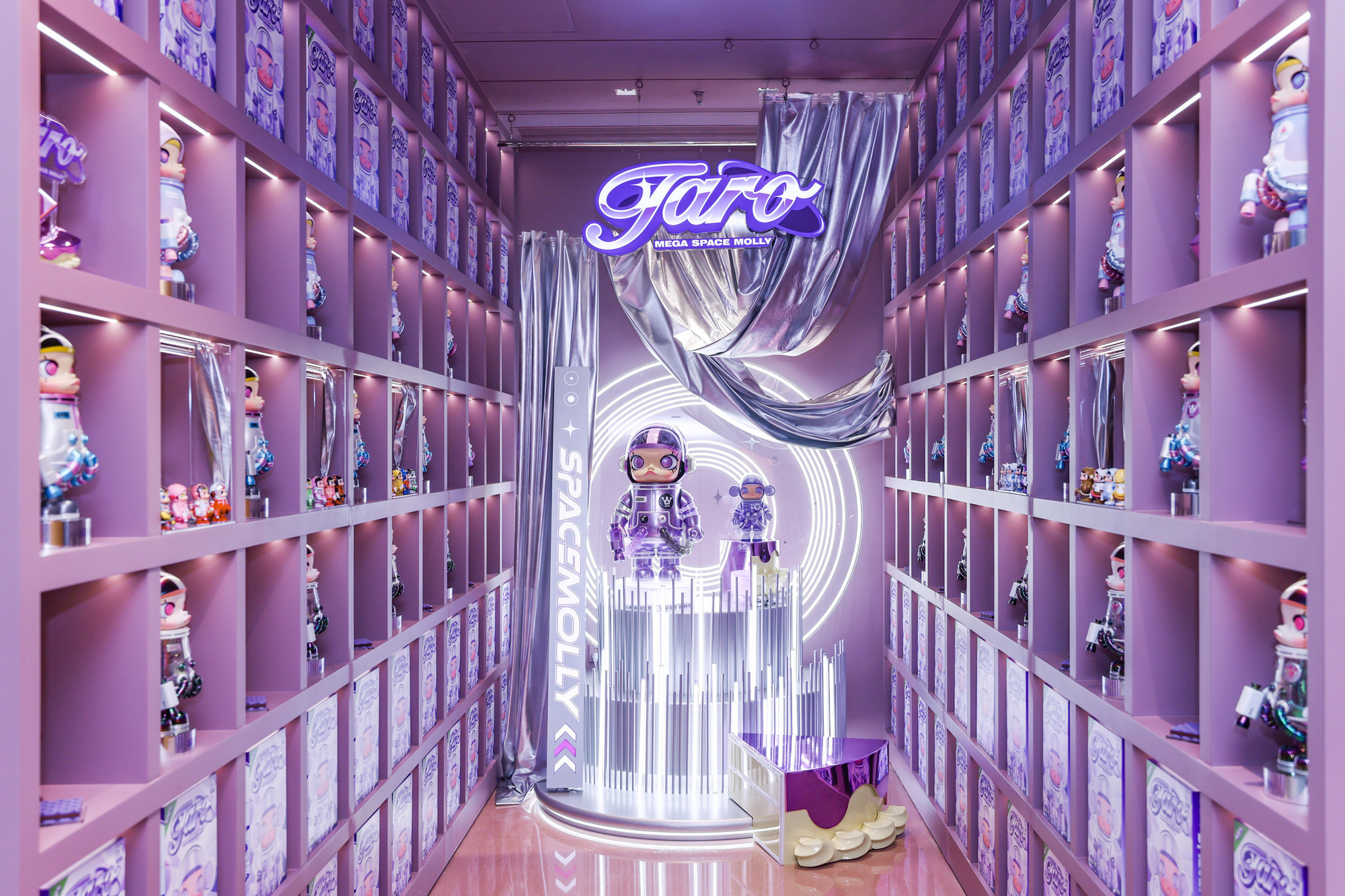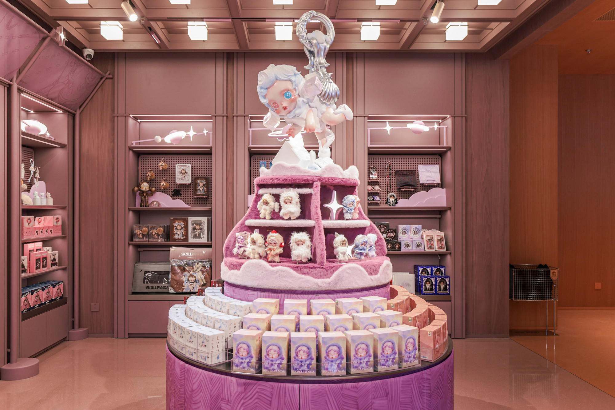 空间设计上,入口处双立柱IP艺术装置将LABUBU等经典角色以“树洞探趣”造型错落嵌入,通过虚实结合的设计让静态装置具备互动张力,成为南京路步行街上极具吸睛度的打卡点;二层打造的IP主题沉浸场景更实现“一步一景”,营造出层次丰富的体验感,开业首日即成为社交平台热门话题。