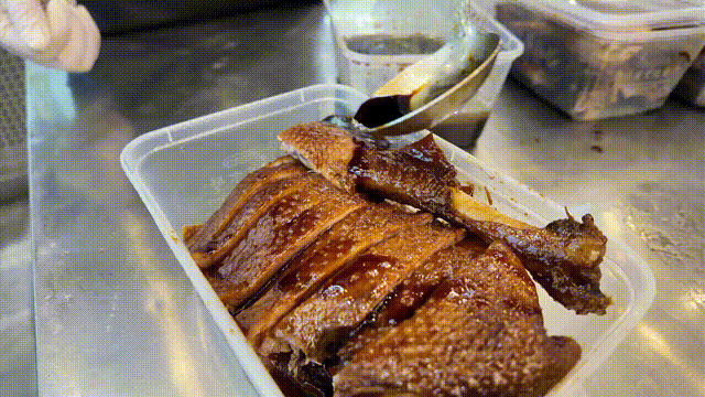 切好的卤鹅,一定要趁热配上辛辣的新鲜蒜末,再淋上一勺精华所在的老鹅高汤。蒜香解腻,高汤提鲜,简单两步,却是让味道升华的秘诀。也正因为这份坚持,小店每天都能稳稳地卖出四十多只卤鹅,来的主顾多半是相识多年的老邻居。