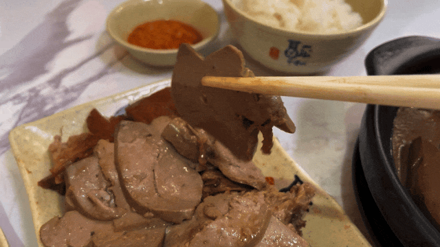 成品的鹅肉肌理细腻、紧实弹牙,咀嚼间毫无柴感,每一丝纤维都吸饱了浓郁醇厚的汤汁。那锅历经时间浓缩的精华酱汁,更是整道菜的味觉核心——简单一勺淋在热腾腾的米饭上,米粒瞬间裹上油润酱香,入口回味悠长,是老客们心照不宣的“隐藏秘籍”。