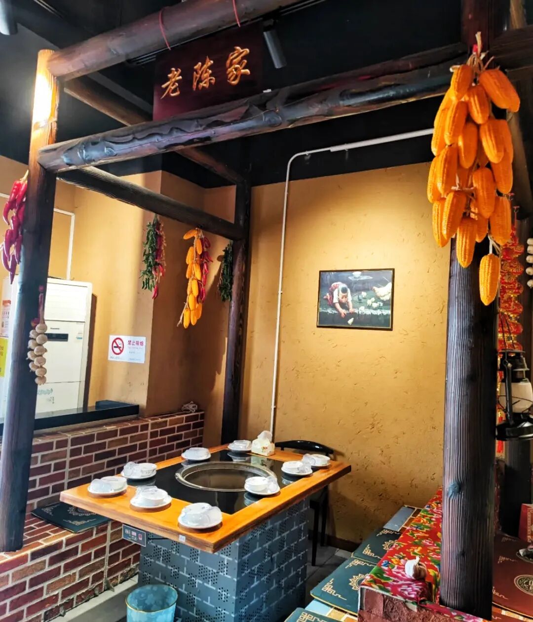 一进店就像走进了东北农家院,桌台和格挡是仿砖设计,墙上挂着一串串金黄的玉米棒,氛围直接拉满。食材也很有讲究,大鹅是从辽宁空运来的,新鲜度在线,还能吃到店家自己腌制的酸菜,酸香够味儿,是地道的东北风味。