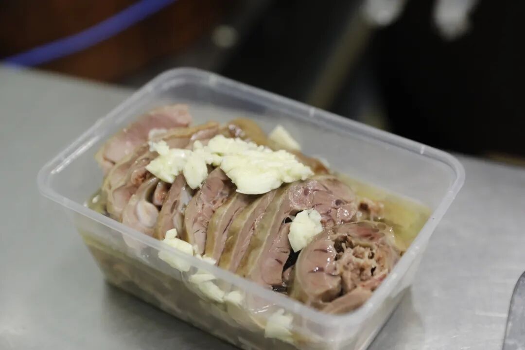 盐水鹅同样也是店内的热门畅销菜,卤好的鹅肉呈现出干净莹润的淡黄色,肉质紧实而有嚼劲,肌理分明。入口是恰到好处的咸香,既能充分激发鹅肉本身的鲜美,又绝不会喧宾夺主。正是这份清爽与本真,使它成为了附近居民家中餐桌上的常客,时常特意前来,单独打包一份回家。