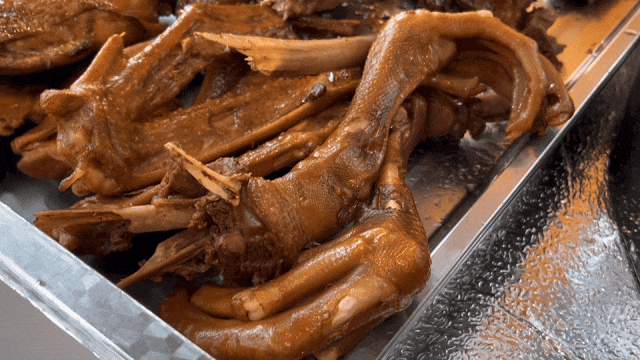有选择困难症?别怕!一道鹅的卤水拼盘,包括鹅头、鹅胗、鹅脚、鹅脖,直接all in。卤水带着八角与桂皮的辛香,渗透进每一丝肌理。鹅头香,鹅胗脆,鹅脚胶质足,绝对是和亲朋好友小酌时的“黄金搭档”。