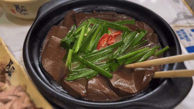 在懂行的老饕眼里,卤鹅肝绝对是必点菜。这种并非填鸭式产出的法式鹅肝,而是自家养鹅场自然生长的“粉肝”,夹起来duang duang的,口感Q弹滑嫩,入口即化,与本地冷盘鹅肝的扎实口感截然不同,风味堪称一绝。