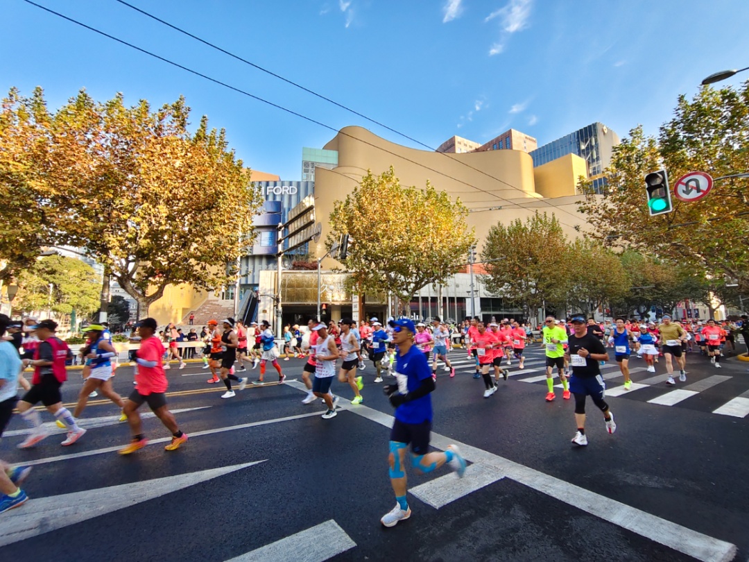 LV“路易号”巨轮是沪上持续火爆的打卡点,吸引海量客流;张园融合海派文化传承与商业功能,同样是人流如织的多元化城市空间;“梅泰恒”商圈、静安嘉里中心、静安寺商圈,尽显奢华与繁华,国际大牌橱窗琳琅满目。而华山路至常熟路的“巨富长”路段,一直是上马的经典景观,赛道两旁的建筑群融合了老上海的独特韵味与现代都市的时尚气息,为跑者们带来别样的奔跑体验。