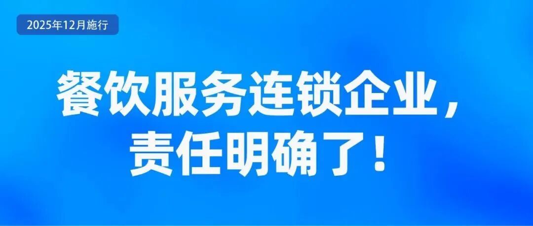 市场监管总局发布《餐饮服务连锁企业落实食品安全主体责任监督管理规定》,加强餐饮服务连锁企业食品安全监督管理,督促其落实食品安全主体责任。《规定》自2025年12月1日起施行。在监管机制方面,《规定》明确,门店数量在10000家以上、1000—9999家、999家以下的餐饮服务连锁企业总部的食品安全监管工作分别由省级、市级、县级市场监管部门负责。在责任分担机制方面,《规定》要求,餐饮服务连锁企业实行贯通式管理,建立总部每月调度、分支机构每周排查、门店每日管控的工作制度和机制。