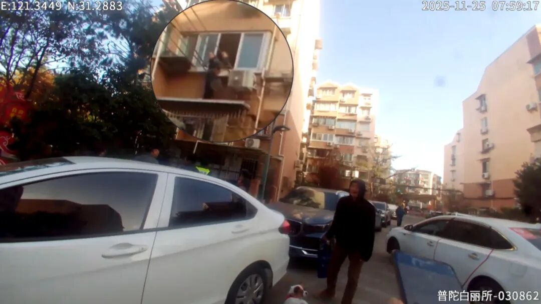 险情发生在雪松路503弄某栋楼301室。街面巡防民警徐以清、吴跃胜第一时间携带救援装备疾驰而至,三楼窗外的景象令两人心头一紧,只见八旬老人双脚仅以脚尖点在简易雨棚上,身体紧贴晾衣架悬空,塑料雨棚在体重压迫下微微形变,随时可能碎裂。“当时老人意识模糊,身体已经僵硬,稍一动弹就有坠落风险。”民警吴跃胜事后回忆道。