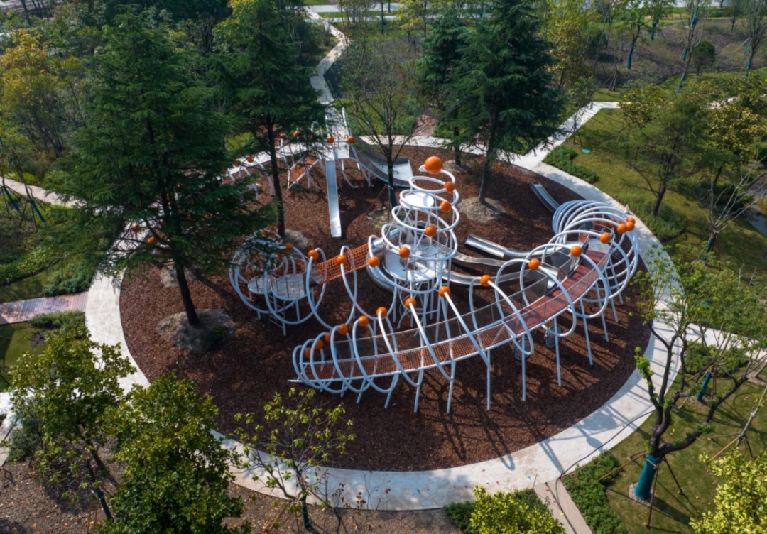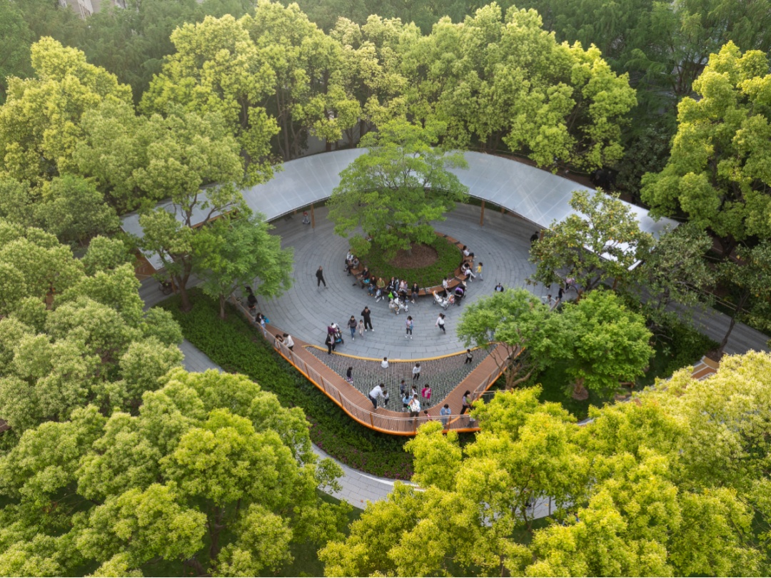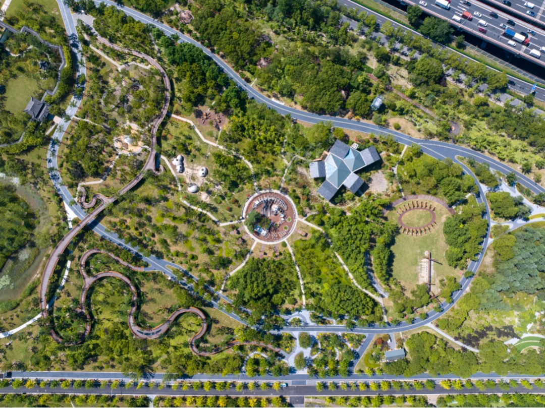 “这不是新建,而是唤醒。”设计团队确立了“低干预”的核心原则。他们像外科手术般精准介入:为了保护生长了二十多年的树木,他们没有铲平重建步道,而是创新性地架设了500米长的架空栈道,与2.7公里地面绿道无缝衔接,形成一条在树冠间穿行的“多维绿道”。这一设计不仅成为公园的标志,荣获全球缪斯设计奖,更是一种态度的宣示:生态保护是发展的前提。
