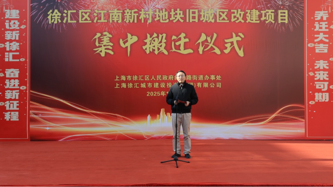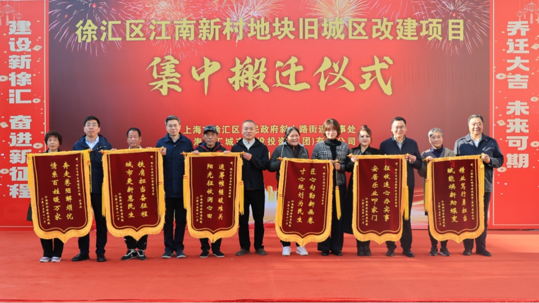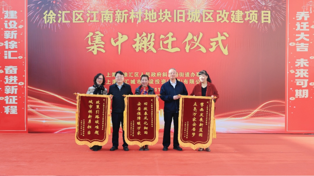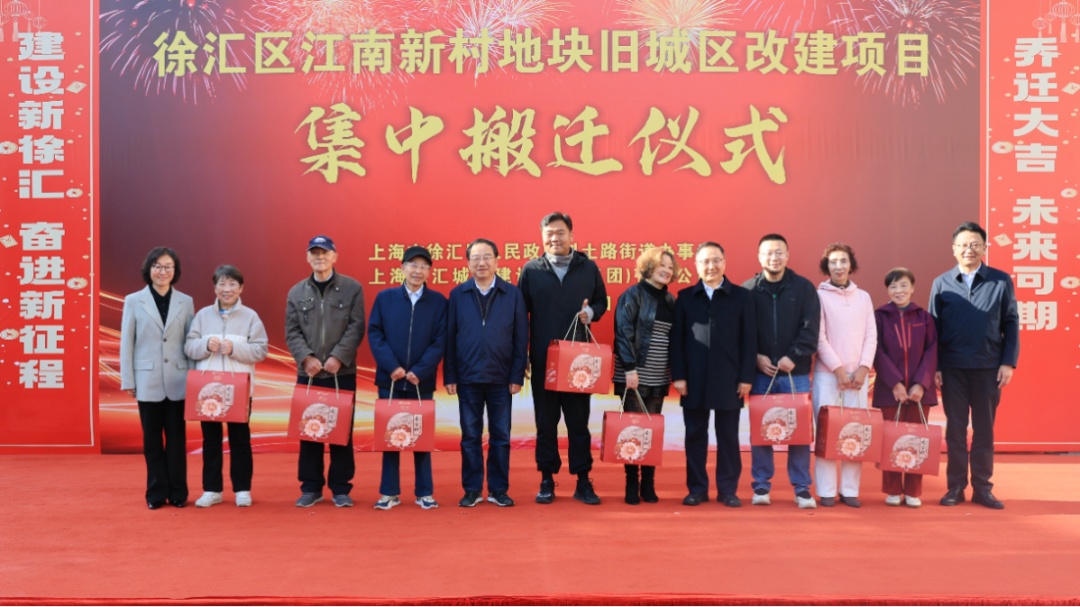 在集中搬迁仪式上,上海市城乡建设和交通工作党委副书记、上海市住房和城乡建设管理委员会主任王桢,与徐汇区委书记曹立强共同揭牌公布徐汇区江南新村地块旧城区改建项目签约比例。红色幕布落下的瞬间,现场掌声雷动,许多居民举起手机记录下这一刻。