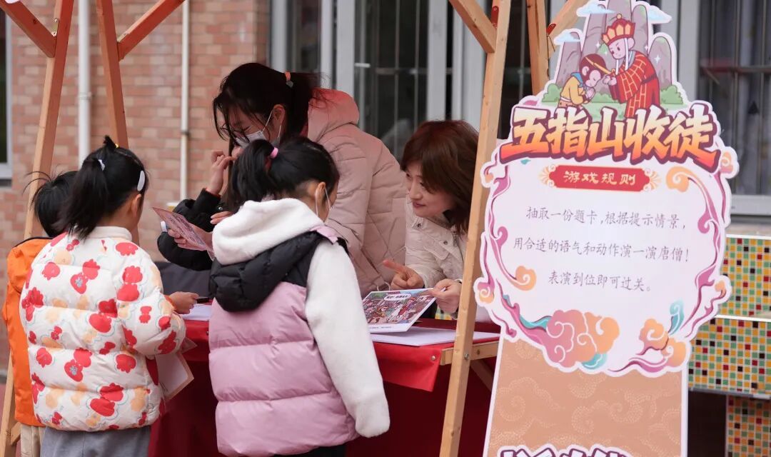 经过三个月的阅读积累,孩子们在“书香作伴‘趣’西游”活动中,沉浸于12个精心设计的关卡,体验12段精彩的“取经”旅程。课堂上读到的名句、人物、法宝等元素,此刻都在游戏中“活”了过来。“用美猴王、齐天大圣、金箍棒三个词来造句”“根据提示情景,用合适的语气和动作演一演唐僧”“师徒四人一共要经历多少难才能取到真经”……每完成1个关卡任务,学生即可获得一枚通关印章,依据集齐印章数量的不同,可兑换不同的奖品,激励他们在阅读与探索的道路上不断前行。