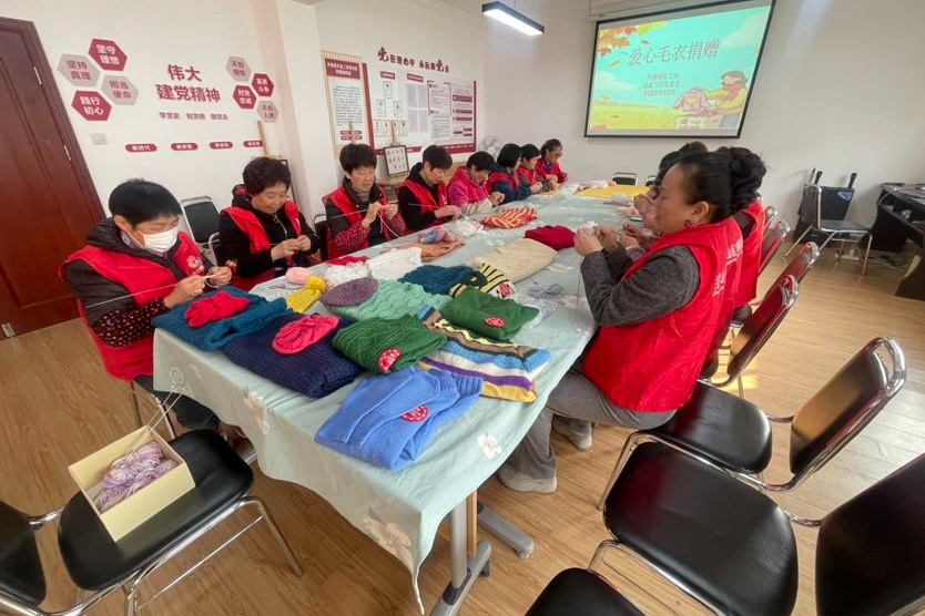一团团柔软毛线,在指尖流转成温暖;一根根细密针脚,编织出跨越千里的牵挂。近日,宝山区月浦镇乐业二村悦乐手工编织班的志愿者们耗时近一个月,织成20件爱心毛衣,这20件爱心毛衣连同配套的围巾、帽子等物资,将跨越2000余公里被送往云南师宗县,为当地家庭困难的中小学生送去冬日暖意。