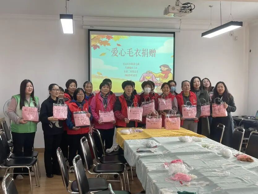 据了解,今年是乐业二村悦乐编织班成立的第七个年头,这个由社区擅长手工编织的阿姨们组成的温暖团体,七年来始终坚守一份初心——将一针一线织就的暖意,送往新疆、云南、贵州等山区的孩子们手中。