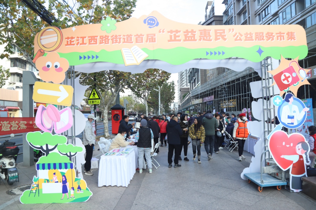 活动当天,首届“芷益惠民”公益服务市集在五月花广场热闹开市。市集聚焦居民秋冬需求,设立32个摊位,提供政策咨询、健康检测、非遗体验、互动游戏等多种服务。现场还设有志愿者招募专区,不断有居民咨询并注册成为新志愿者,“我为人人、人人为我”的氛围持续蔓延。