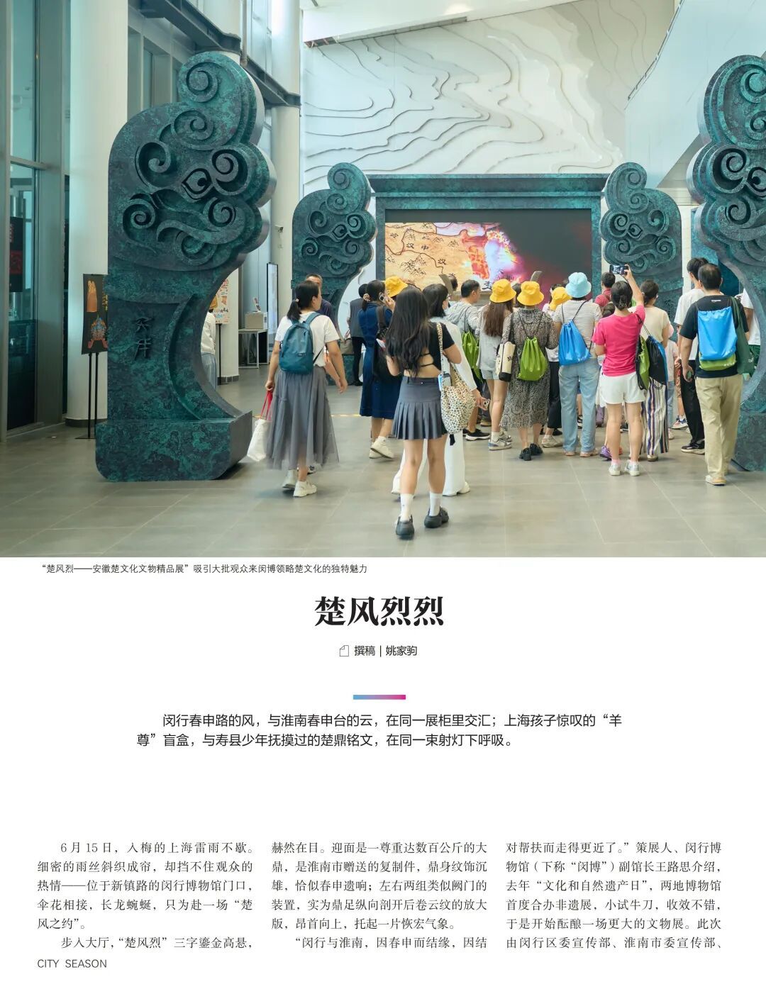 01 《迎来,送往》 作者:金可儿 从荧屏热剧到闵行街头巷尾的淮南牛肉汤 从飞驰千里的“春申号”到两地的“楚鼎”之谊 一条历史文脉与现代产业融合交织的纽带 正将两座“春申之城”紧密相连 02 《楚风烈烈》 作者:姚家驹 闵行春申路的风 与淮南春申台的云 在同一展柜里交汇 上海孩子惊叹的“羊尊”盲盒 与寿县少年抚摸过的楚鼎铭文 在同一束射灯下呼吸 03 《淮南滋味》 作者:岳倩林 从舌尖到心间 闵行与淮南的情谊 蕴藏在质朴的烟火气里 如那锅永远滚烫的牛肉汤 在岁月文火的熬煮下愈见醇厚 袅袅炊烟中续写着新的故事 04 《煤城的B面》 作者:张怡岚 无论是追寻历史的脚步 还是畅享自然的乐趣 或是品尝特色美食 淮南都与闵行携手 共同在文旅融合发展的道路上不断前行 05 《谁人不识春申君》 作者:吴玉林 春申君跟上海 尤其是与闵行究竟有着什么样的关系 进而演变成独特的春申文化现象? “ 还有更多精彩内容 在这里等你 ↓↓↓↓↓ ” 《怀旧的诱惑难以抗拒》 作者:薛羽 当午夜将临,喧嚣趋于静止时 在红馆外静候散场的月亮 会将曾于某夜探访过地球的辉光闪烁在众人的瞳仁里 它是一九几几的月光,二零零几的月光 唯独不是预示明日的月光 《苏超火火火火火》 作者:王辉城 球场氛围好到“炸” 球员们热血拼搏 观众摇旗呐喊 线上玩梗嗨翻 这样的苏超谁不爱呢? 《仙居除了杨梅,还有“八大碗》 作者:胡海明 仙居虽是个恬静幽雅的小县城 但上苍却赋予了它遐迩闻名的优质杨梅 和令人唇齿留香、回味无穷的美食 还造就了鬼斧神工的美景 《夏日冷面花头多》 作者:戴立骅 在闵行鑫都满天星生活广场 藏着一家传统上海本帮面馆 两个人,一口锅,创业4年 每一碗都是传统风味的完美复刻 《她替文物说话》 作者:张怡岚 每当观众因讲述有所得时 那份满足远非物质可以衡量 这让卢佳确信 文化可以辐射更多人 而照亮他人的过程 也温暖了自己 《疯狂的Labubu》 作者:指间沙 地铁、电梯、餐厅 当然还有抖音、小红书等等网络社交平台…… 各种场合的人们都在交流着Labubu 泡泡玛特的这一IP已经彻底实现跨国跨代际的破圈 《斯瓦扬布彻夜不眠》 作者:贺馨蕊 临走之前,Fred曾问我 离开尼泊尔后最怀念的是什么? 这问题的答案注定难以取舍 不过我仍愿意用一个字加以概括 那就是“人” 《老底子哪能轧朋友?》 栏目顾问:褚半农、薛南平 在本地 老底子(以前)如何过七夕节呢? 手头紧的年轻人会以什么方式谈朋友呢? 本期栏目用四个上海方言词 带你领略这种“闵行式浪漫” 《去什么地方呢,这么晚了》 作者:王振羽 一战后至二战前 中国的铁路怎样推进? 这一轨道交通如何管理? 民众的时间观念、出行习惯如何调整? 《少年混沌时》 作者:子欢 20多年前 当雄一和网友们在BBS上热烈讨论偶像时 他们没想到自己的一字一句 正变成虚拟世界的一砖一瓦 仅仅20年 赛博大厦就已建成 它坚不可摧 足以和真实世界对抗 转载请注明来自今日闵行官方微信