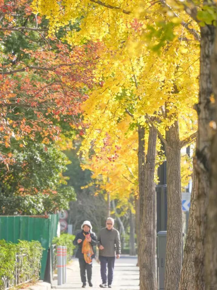 在长宁外环林带生态绿道空港八路与友乐路南侧的3米宽绿道间,银杏树已悄然换上“金衣”。未来两周,金黄的银杏叶将纷纷扬扬飘落,层层叠叠铺满整条绿道,将蜿蜒的步道装点成“绿屋金毯”,想必这是市民就近赏秋的热门打卡地。