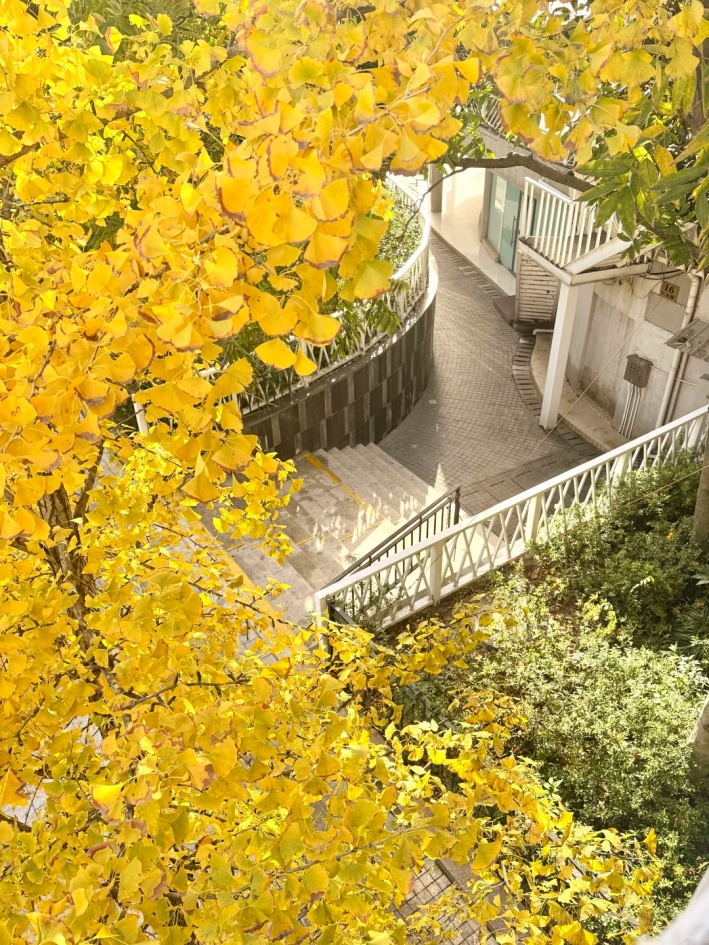 天桥中央可同时捕捉双色系秋景,银杏树下逆光拍叶片通透如琥珀。