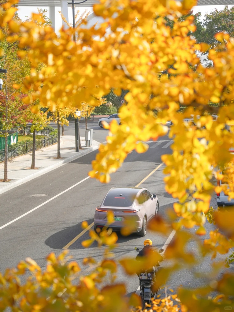 南园滨江绝对是2025年上海银杏打卡的新晋顶流!核心亮点在江滨路富润路口的网红天桥,一侧银杏铺就“金绸缎”,一侧乌桕燃成“红玛瑙”,红黄撞色搭配江景,随手拍都是电影感画面。