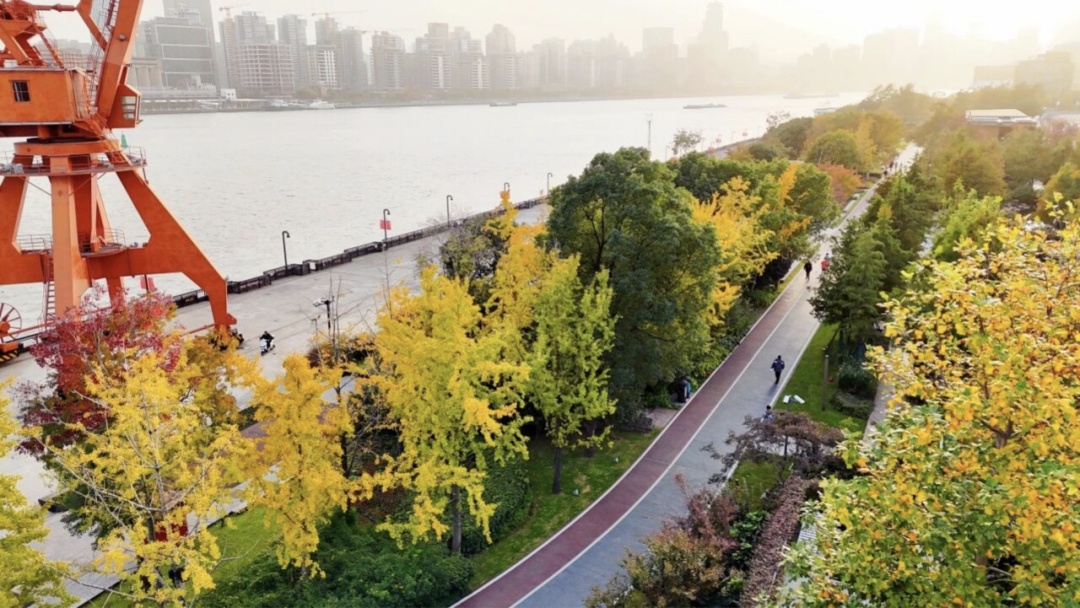 当深秋的银杏为杨浦滨江的“绿之丘”点缀上灿烂的金色时,这里便上演了一场硬朗与柔美,工业与自然的精彩对话。