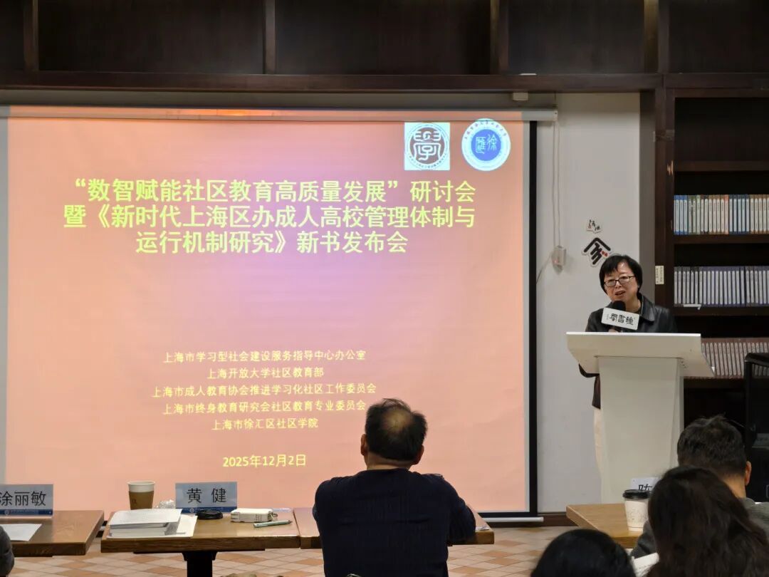 日前,“数智赋能社区教育高质量发展”研讨会暨《新时代上海区办成人高校管理体制与运行机制研究》新书发布会,在徐汇绿地缤纷城的钟书阁举行。本次活动汇聚了全市社区教育领域的相关负责人、专家、实践者和研究者,大家共同探讨人工智能时代社区教育的创新路径与发展前景。 本次活动的重头戏是《新时代上海区办成人高校管理体制与运行机制研究》新书发布环节,该书由上海教育出版社2025年10月出版发行,是徐汇区社区学院连续两年获立项的上海市党的建设研究会课题的获奖成果。 发布会上,徐汇区社区学院相关负责人回顾了徐汇区社区教育二十年来的发展历程,介绍了徐汇区社区学院相继推出《徐汇区社区院校20年》《教育强国建设背景下社会协同力的提升研究》与此次发布的新书《新时代上海区办成人高校管理体制与运行机制研究》。 今年,上海学指办联合上海市成人教育协会推进学习化社区工作委员会、上海市终身教育研究会社区教育专业委员会共同组织开展了“数智赋能社区教育高质量发展”2025年上海社区教育主题征文活动。研讨会上,上海学指办对“数智赋能社区教育高质量发展”主题征文活动进行了回顾与总结,共评选出一等奖39篇、二等奖51篇、三等奖57篇、优秀奖48篇。徐汇区社区教育工作者在这次评选中表现尤为突出,获一等奖两项,二等奖一项。 作为一等奖的获奖代表,徐汇区社区学院终身教育部相关负责人在发言中展示了“汇地图”项目的丰硕成果。该项目历经三年深耕,已构建起成熟的人文行走数字生态,平台累计收录108个优质学习点位,开发13条人文行走路线,并成功获评“上海市终身学习新品牌”。