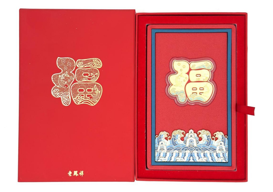 “福如东海”礼品摆件将红色底座、金色“福”字与蓝白海浪纹巧妙结合,既展现珐琅工艺的色彩层次,又传递传统“福”文化的美好寓意,成为收藏与馈赠的佳品。