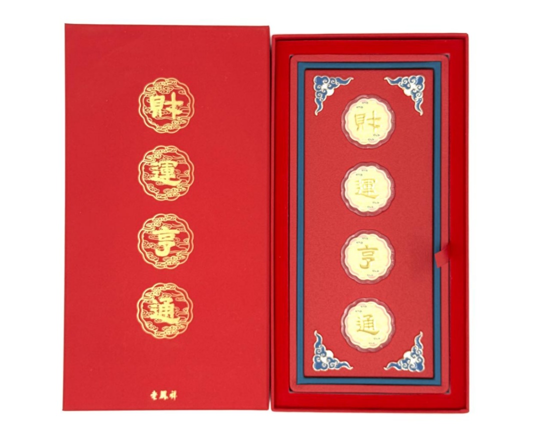 “财运亨通”礼品摆件以中国风为基调,圆润金黄的主体搭配如意云纹,足金材质与精湛珐琅工艺相得益彰。
