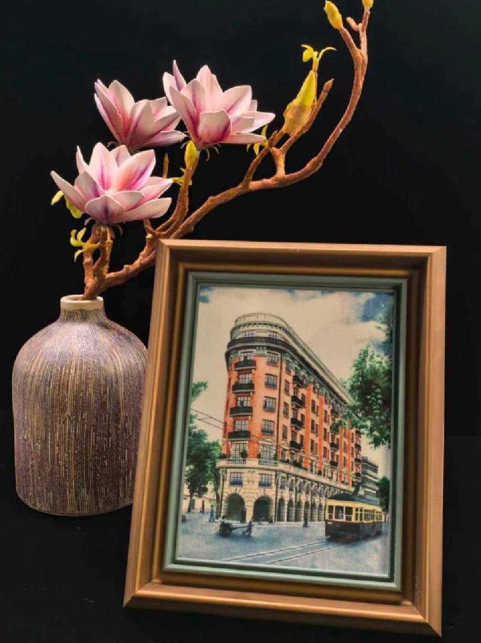 武康大楼系列织锦画将建筑地标与织锦工艺相融。