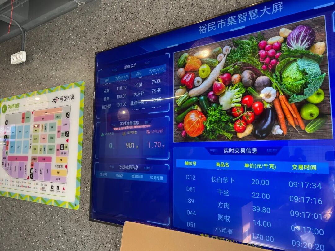 菜场还新引入了智慧化运营体系,增设智能AI识别秤与数据大屏,实时显示菜价和交易信息、当日检测信息等。每个摊位上设有“一摊一码”溯源系统,消费者扫码可查看菜品信息并评价。市集还与京东、美团等外送平台合作,提供30分钟配送到家服务。