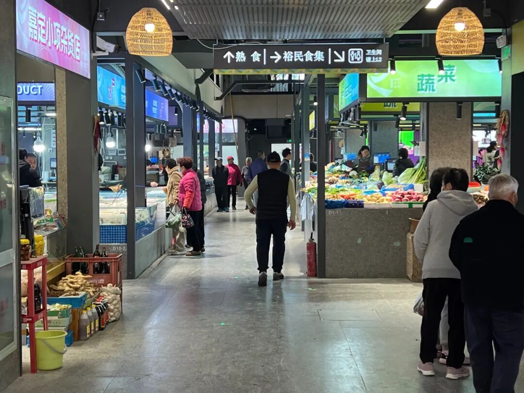 作为南门地区的老牌菜市场,裕民集贸市场承载着不少居民“买汰烧”的生活记忆。但随着时间推移,传统菜场模式难以满足现代市民对购物环境、商品品质和文化体验的多元需求。此次改造升级,嘉定工业区以“嘉定品质民生,特色在地文化”为核心理念,通过空间重构与业态革新,将传统菜市场升级为集民生服务、社交体验、文化传承于一体的社区商业综合体,构建“15分钟便民生活服务圈”。