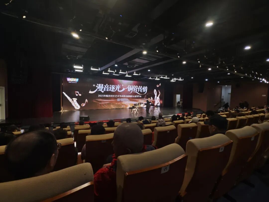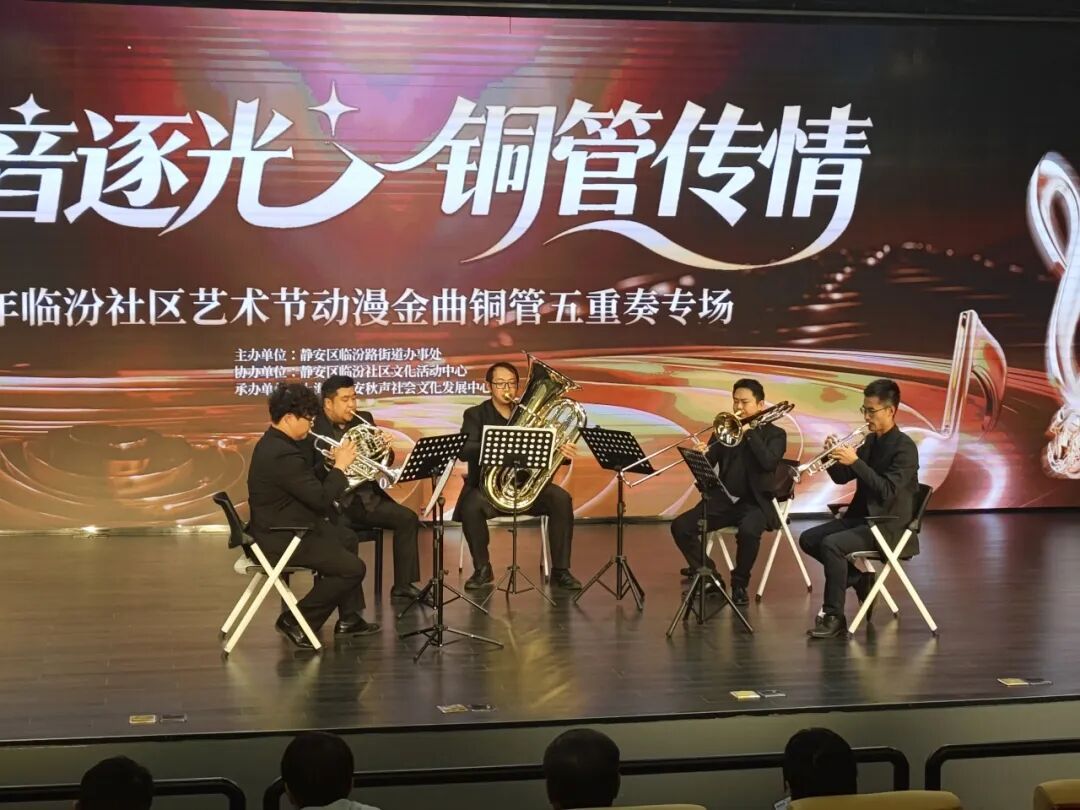 近日,2025年临汾社区艺术节动漫金曲铜管五重奏专场温情收官,150位社区居民齐聚安业路76号临汾社区党群服务中心临汾剧场,在铜管乐中,共赴一场音乐之约。