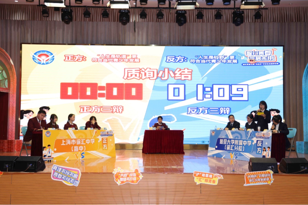 决赛现场,各支队伍将抽象的青春与时代命题转化为具体的思想交锋。双方辩手引经据典、妙语连珠,在立论、质询与驳斥的环节中,既展现了严谨的逻辑架构与扎实的知识储备,更将“学习的意义”“人生选择”等议题与自身成长、时代责任紧密结合,充分展现了当代徐汇学子勤于思考、敢于表达、乐于探索的青春风貌。