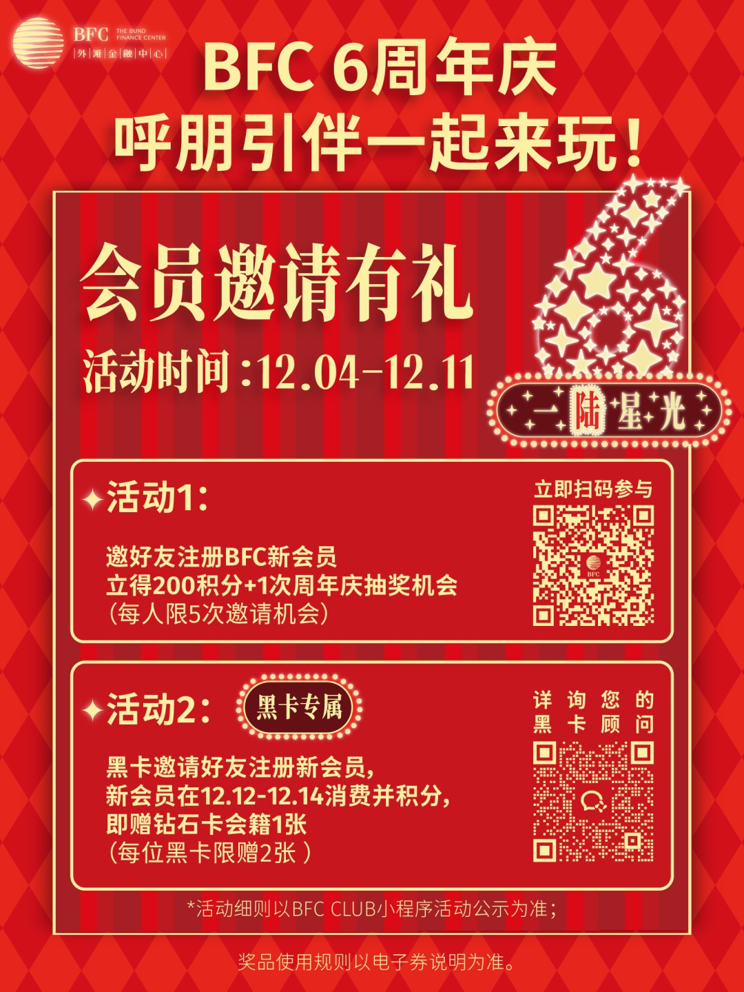 *BFC钻石卡会员享周末、节假日全天免费停车