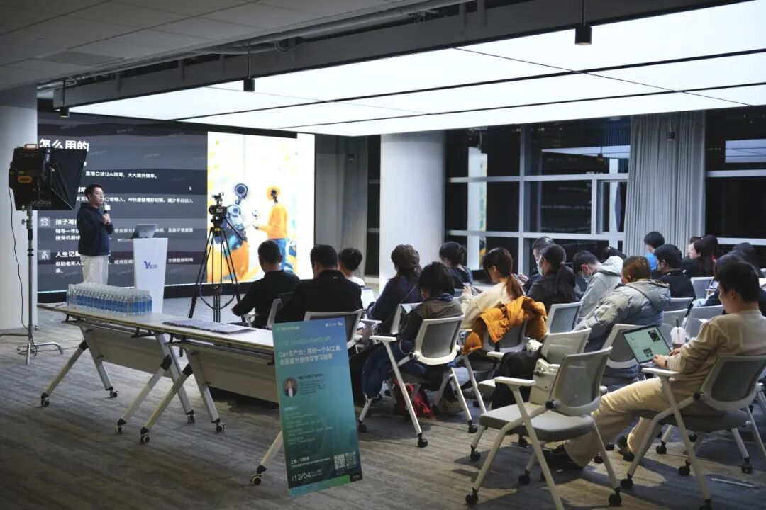 本次“Get生产力”专题活动,是“AI Workshop”系列五期课程的第一站。据主办方介绍,该系列旨在系统化覆盖创作全链路,后续还将引入聚焦创意激发、智能设计、经验“显化”及画布式思维协作等方向的顶尖AI产品,在V聚场这一创新文化地标持续开讲。