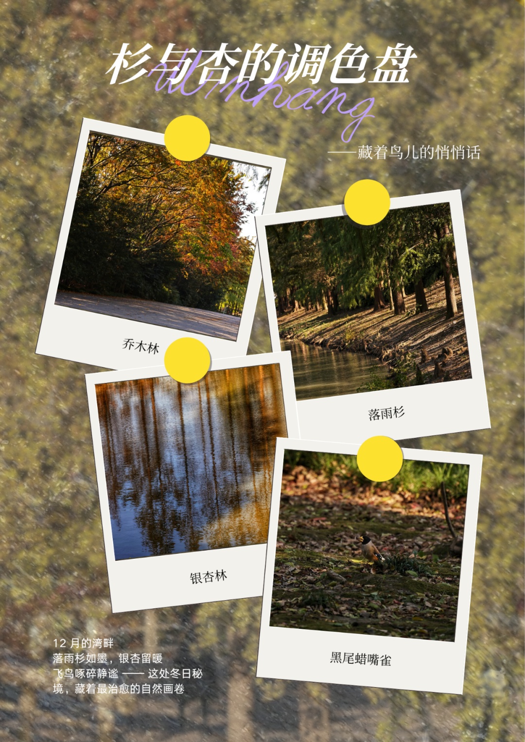 季节转冷,景色却更鲜明。从枫林到银杏,从湖面到杉木,闵行的冬天有许多不同的风貌。