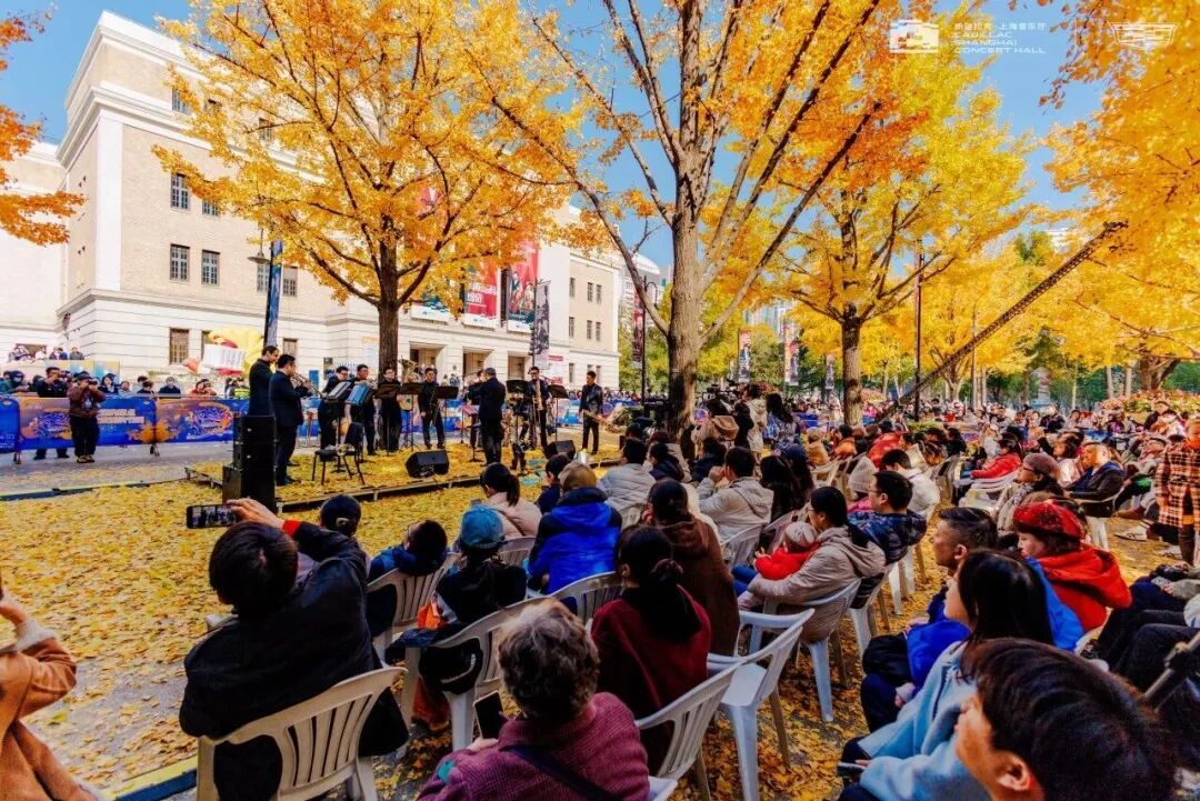 深秋时节,凯迪拉克・上海音乐厅户外南广场区域被金黄银杏叶层层铺满。这片已陪伴市民十二载的“最美城市舞台”,如今依然为上海的城市文化生活增添着熠熠光彩。12月6日,凯迪拉克・上海音乐厅品牌项目“银杏音乐会”,作为2025上海城市草坪音乐会“冬之乐”系列演出之一,在音乐厅南广场西侧银杏林如期而至。