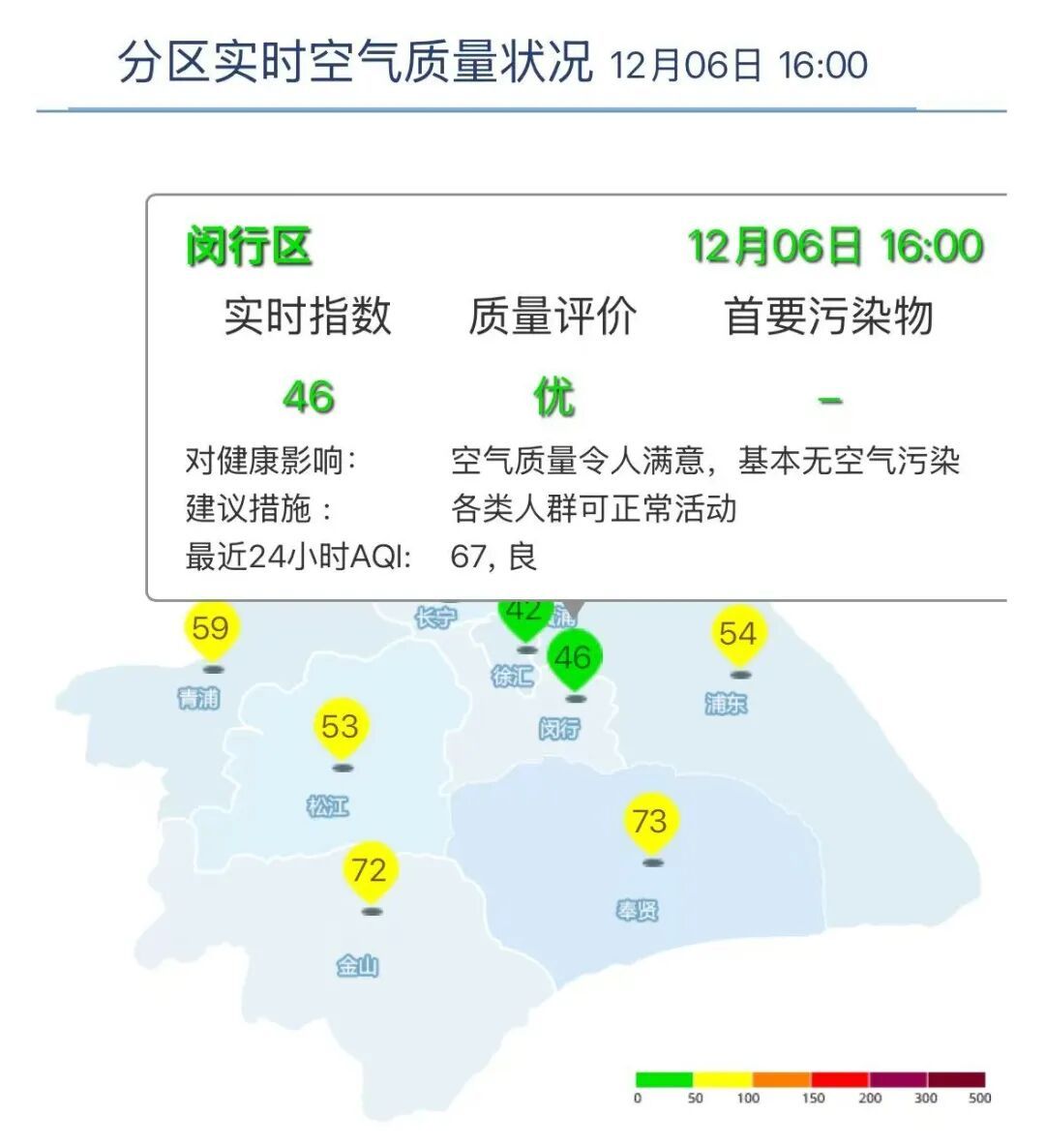 闵行区AQI为46,优,