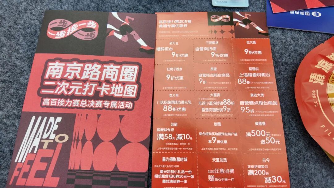 “工作人员特意给我们做了讲解,这张导览图上不仅标着南京东路商圈的核心区域,还把所有合作商户的位置都标得清清楚楚。我们都是第一次来上海,沿着打卡路线走一圈,既能把南京路的精华景点都逛到,又能通过这些老字号了解上海的历史文化。”卿海指着地图上的红色标记说,南京东路作为上海老字号云集的商业地标,这次有许多知名商户参与联动,从餐饮美食到文创周边,涵盖了跑者们的多元需求。更贴心的是,不同商户的优惠力度和使用规则都在优惠券上标注得明明白白,能轻松使用。