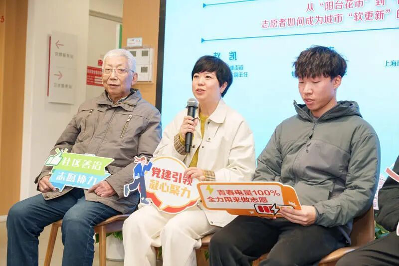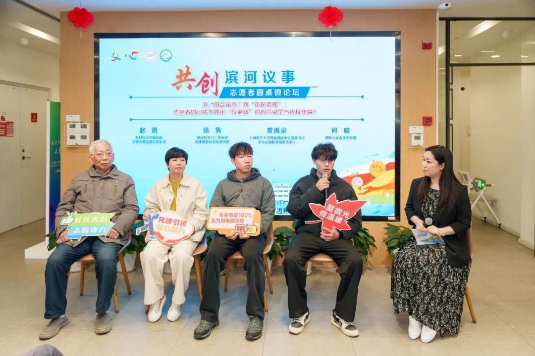 滨河党建沿线兄弟街道代表虹口区北外滩街道河滨大楼业委会副主任赵凯、静安区石门二路街道恒丰居民区党总支书记徐隽,与上海理工大学附属储能中学团委书记黄禹豪、恩派公益青年志愿者何皓四位嘉宾聚焦志愿服务赋能城市治理,以多元视角勾勒志愿服务参与城市“软更新”的实践路径,展现出志愿服务的无限可能。