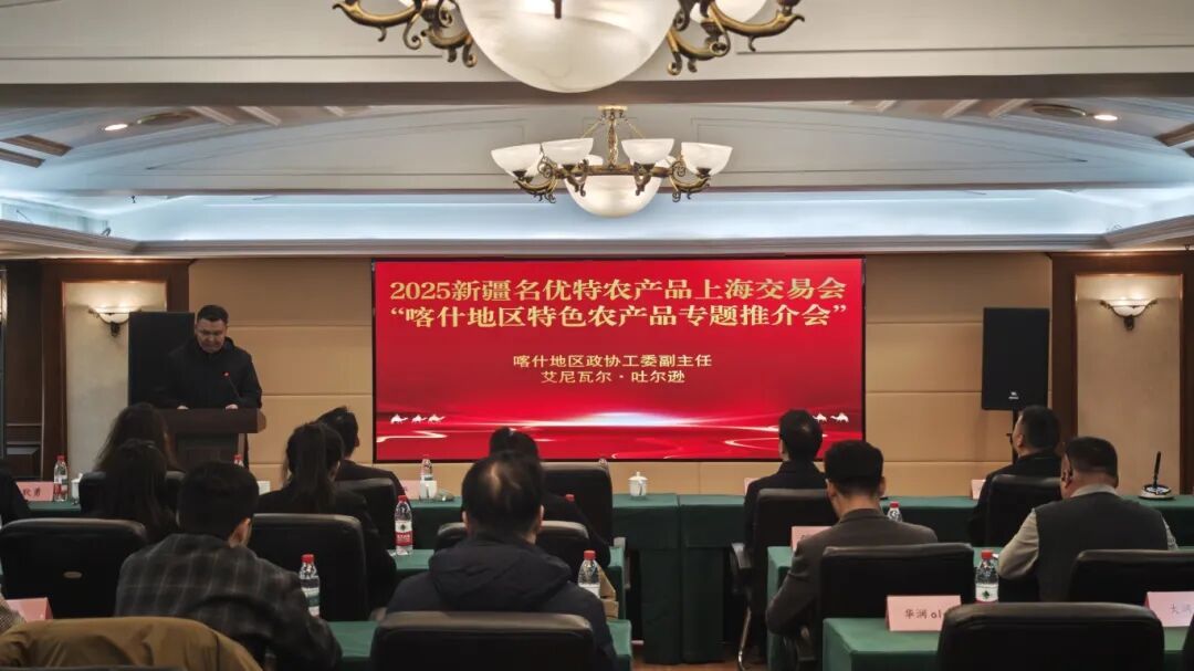 12月5日下午,喀什地区特色农产品专题推介会在上海农业展览馆二楼会议室成功举办。本次会议不仅是喀什优质农产品的集中展示,更是一次注重实效、精准链接产销的务实合作洽谈会,现场签约与采购意向均取得丰硕成果。