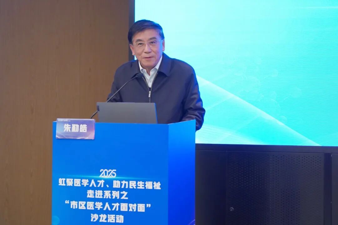 朱勤皓对医学人才队伍建设取得的成效给予肯定。他表示,一是事业凝聚人才,找准发展方向。建立与发展方向相匹配的专业人才,锚定方向,系统培育本土骨干人才,形成“事业引才、方向留才、平台育才”的良性循环,让人才与单位发展同频共振、双向成就。二是助力成名成家,体现专业一流。聚焦行业前沿与业务核心,构建全方位、多层次的专业赋能体系,打造“术业有专攻”的一流人才队伍,同时建立健全人才激励机制与成长通道,鼓励人才深耕细作、追求卓越。三是创造更好氛围,团结就是力量。强调“团结力”。着力打造尊重人才、关爱人才的氛围,倾听人才的意见建议,精准对接人才需求,从人才住房、子女教育、老人关爱等方面为人才解决后顾之忧。四是争取更大荣光,立足社会责任。立足医务工作者社会责任,立足自身定位,将社会责任融入业务发展全过程,提升服务质量与效率,无私奉献,敢于创新,争取更大荣光。