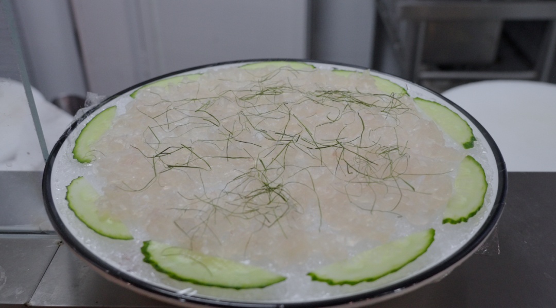 “如果一家店敢称顺德菜馆,那它必须有顺德鱼生。”老板对此极为认真。传统的顺德鱼生多用河鱼,但他针对上海食客对寄生虫的顾虑,大胆升级,选用深海养殖的金鲷鱼和黑鲷鱼。这两种鱼油脂丰润,肉质紧实弹牙。 顺德鱼生是一场五彩斑斓的味觉交响,服务员会端上满满一盘配料:蒜片、姜丝、葱丝、柠檬叶丝、洋葱丝、炸芋头丝、花生米、芝麻……还有自家秘制的头抽豉油和醇香花生油。食客依喜好自行搭配,将鱼片与各色配料一同夹起,蘸上油和豉油入口。复合的香气、多样的口感与鱼生的鲜甜在口中层层绽放,这是唯有在顺德才能体验的、充满参与感和仪式感的鲜活。