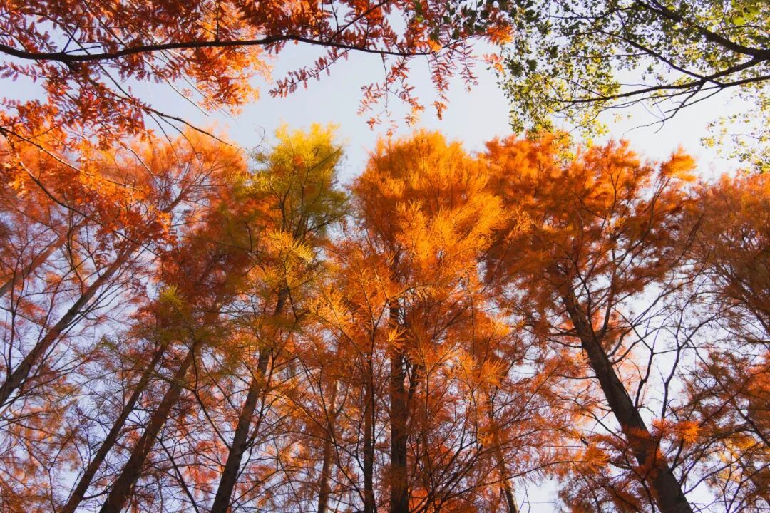 当凉意浸透空气,初冬的“美拉德”色系正加速铺陈。在嘉北郊野公园,成片的杉树褪去青绿,渐染金黄与橙红,迎来一年中的最佳观赏期。