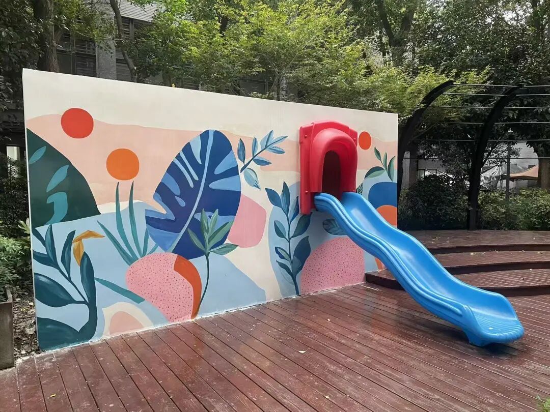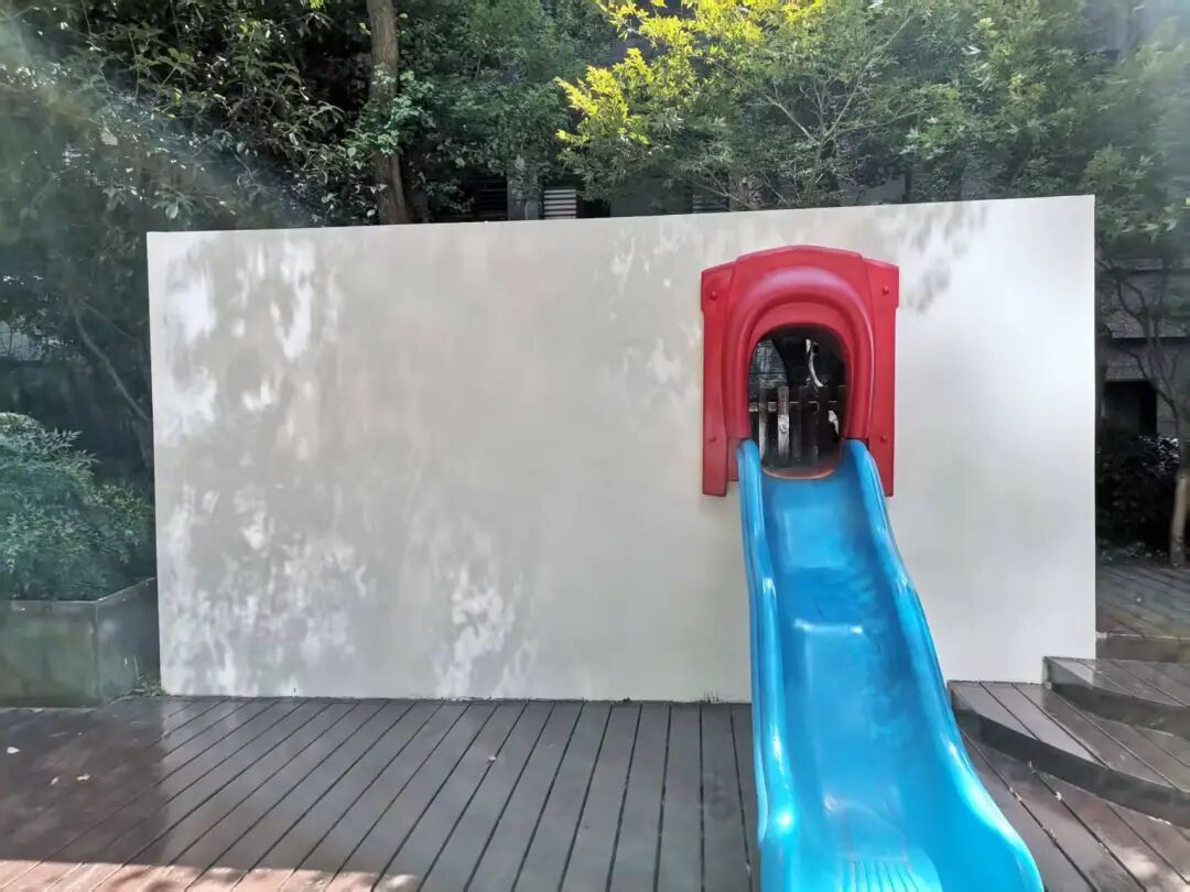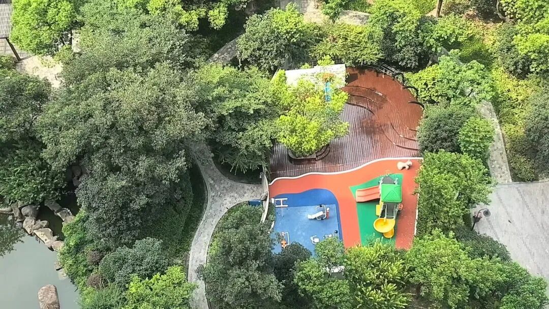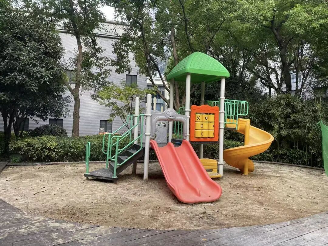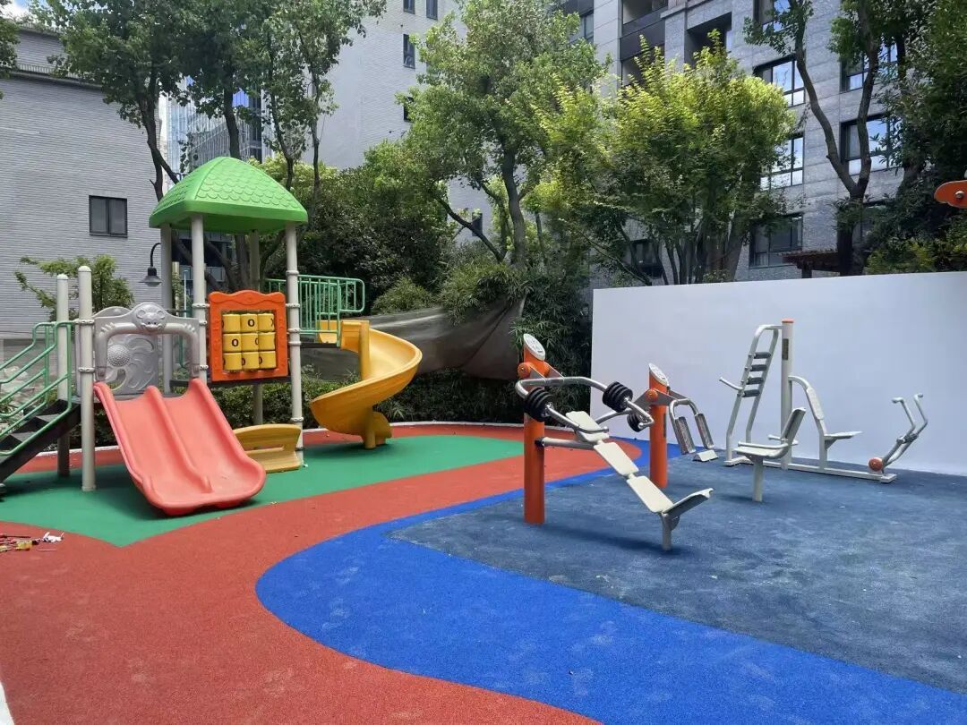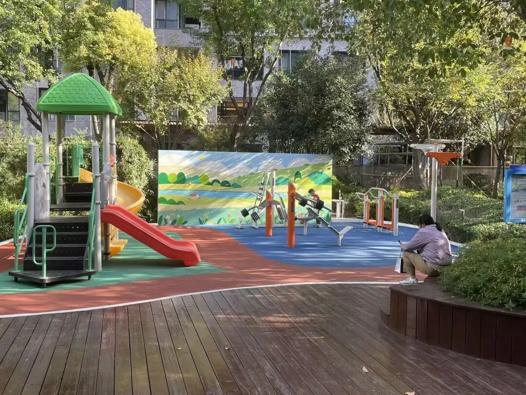 曾经功能单一的儿童乐园,逐步焕发新颜。安全环保的塑胶场地取代了沙地,明亮的照明灯光与高清探头守护着每一份安心,错落有致的生态景观搭配趣味摆设,让“苏河畔的秘密花园”成为现实。