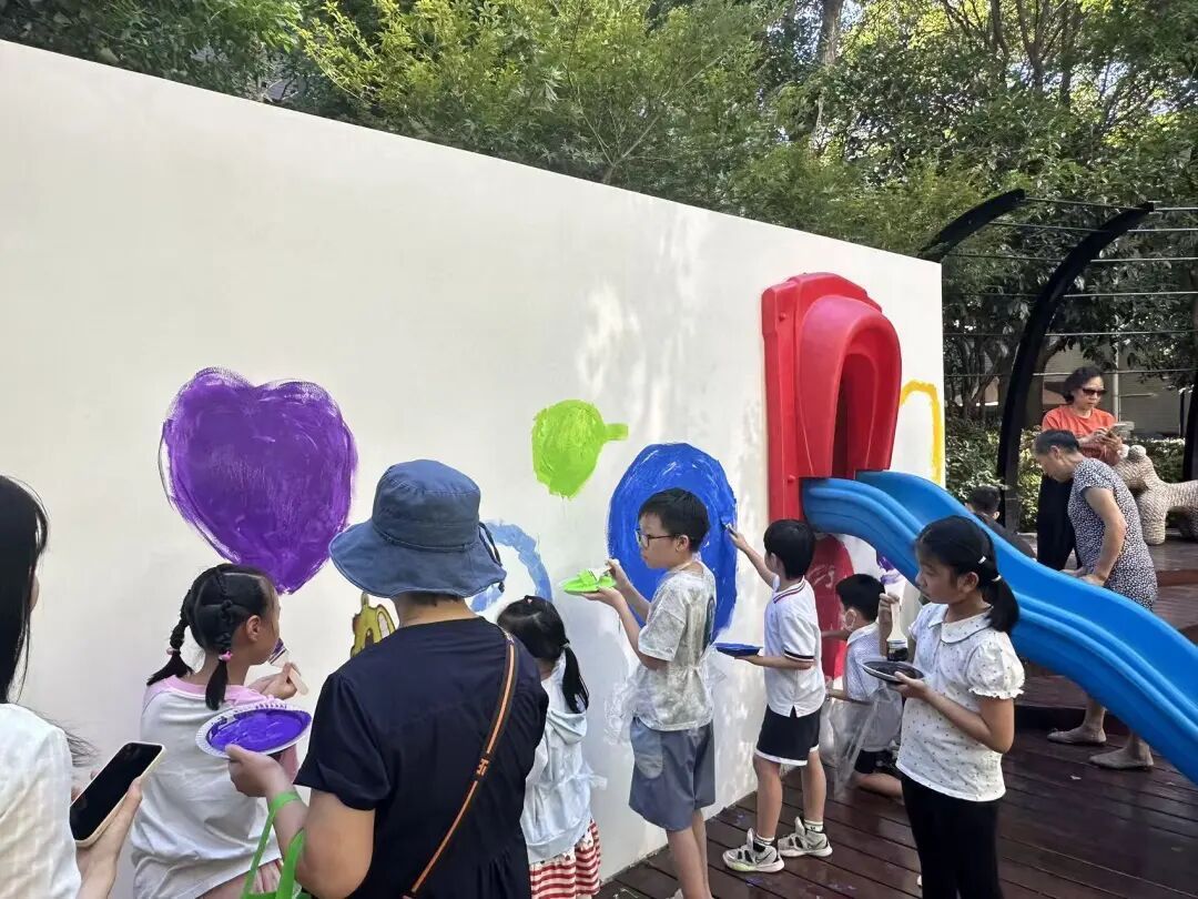 在改造原则确立后,社区的参与热情便迅速从“共识”走向了“共为”。在居民区组织的“童心绘梦·家趣满园”亲子游园会上,一个个家庭执笔参与亲子主题墙共创,大小手相连,用色彩与创意将社区生活、邻里温情与成长记忆绘制于墙。原本平淡的墙面,由此蜕变为承载社区情感、凝聚家园认同的“时光墙”,成为小区中一道有温度、有故事的人文风景。
