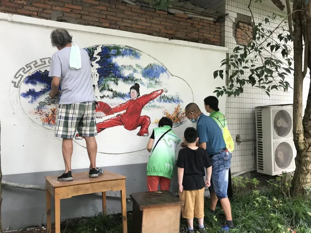 一人作画,众人搭台。郝志平介绍,墙绘过程中最难忘的不是某幅作品,而是一群人。社工们出谋划策,志愿者们更是扑下身子一起干,调颜料、搭架子、打下手……“正因为有了他们,我在墙绘的创作中没有遇到什么困难。”郝志平说。
