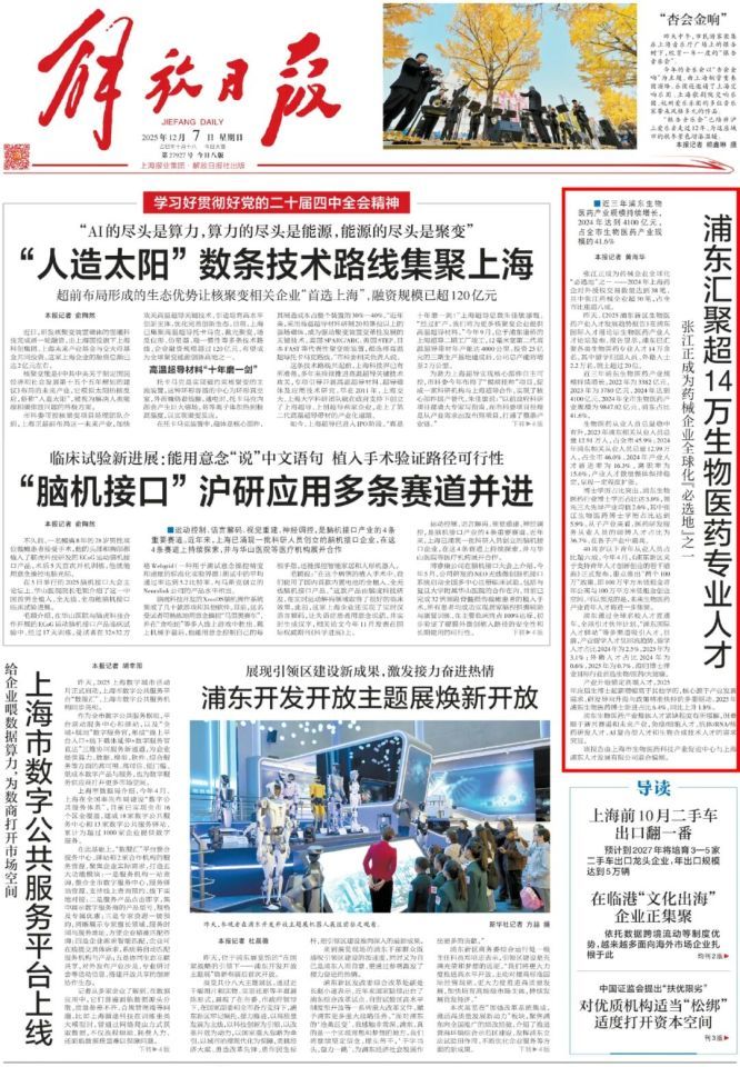 昨天,《2025浦东新区生物医药产业人才发展趋势报告》在浦东国际人才港论坛生物医药产业人才论坛发布。报告显示,浦东已汇聚各类生物医药专业人才14万余名,其中留学归国人员、外籍人士2.2万名,院士超过20位。
