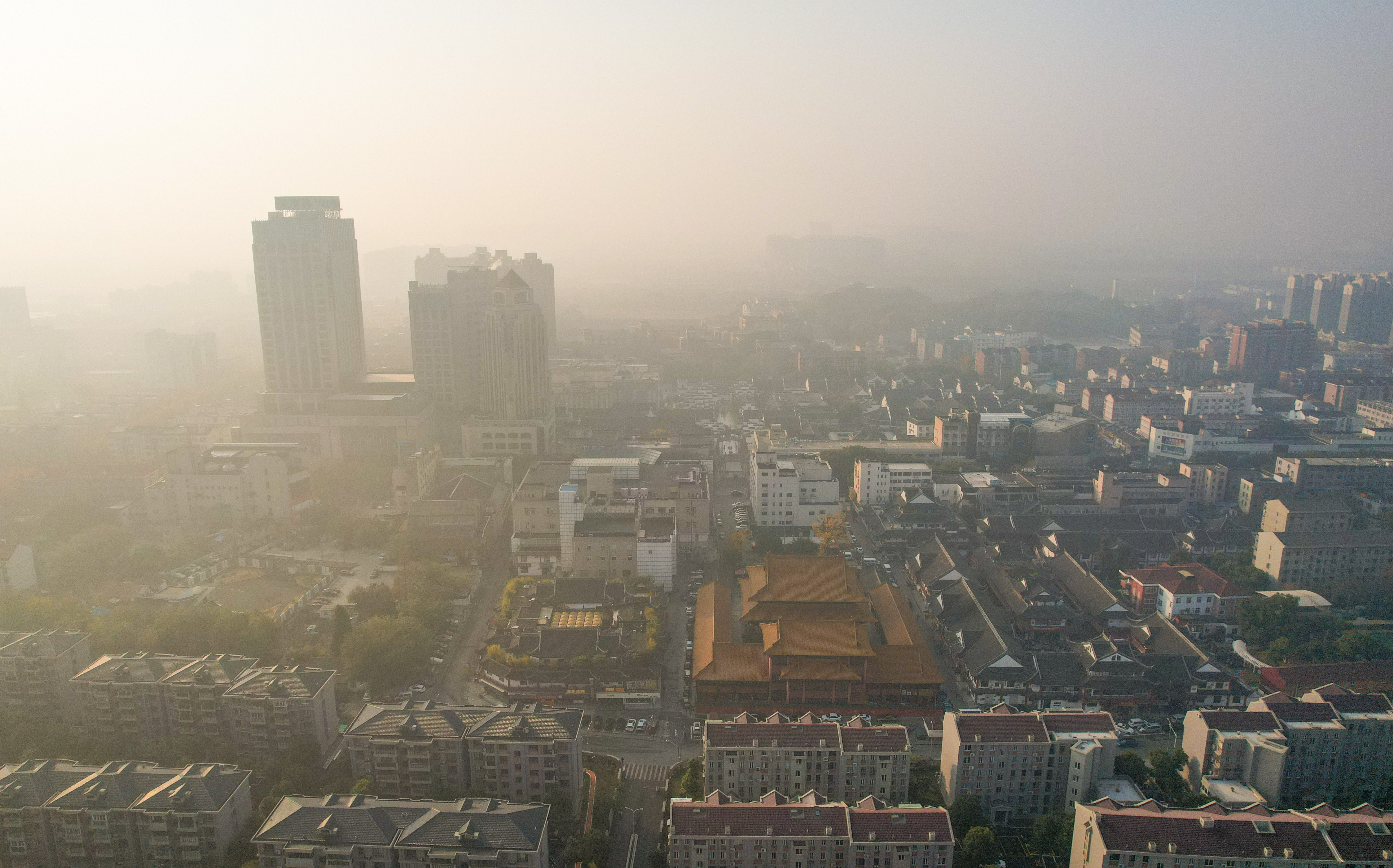 松江城区被浓雾笼罩。 记者 蔡斌 摄