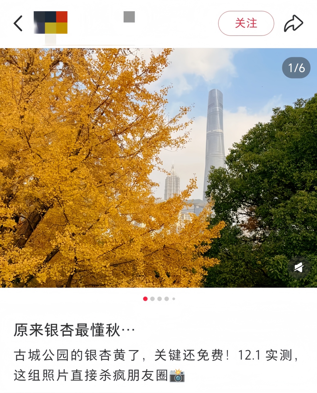 原来,在“神奇机位”的加持下,古城公园的银杏,竟然“长”得比陆家嘴三件套还高。通过实地打卡,市民游客们发现——这处藏在豫园和外滩之间的 “无界公园”,简直把秋日浪漫玩出了新高度!