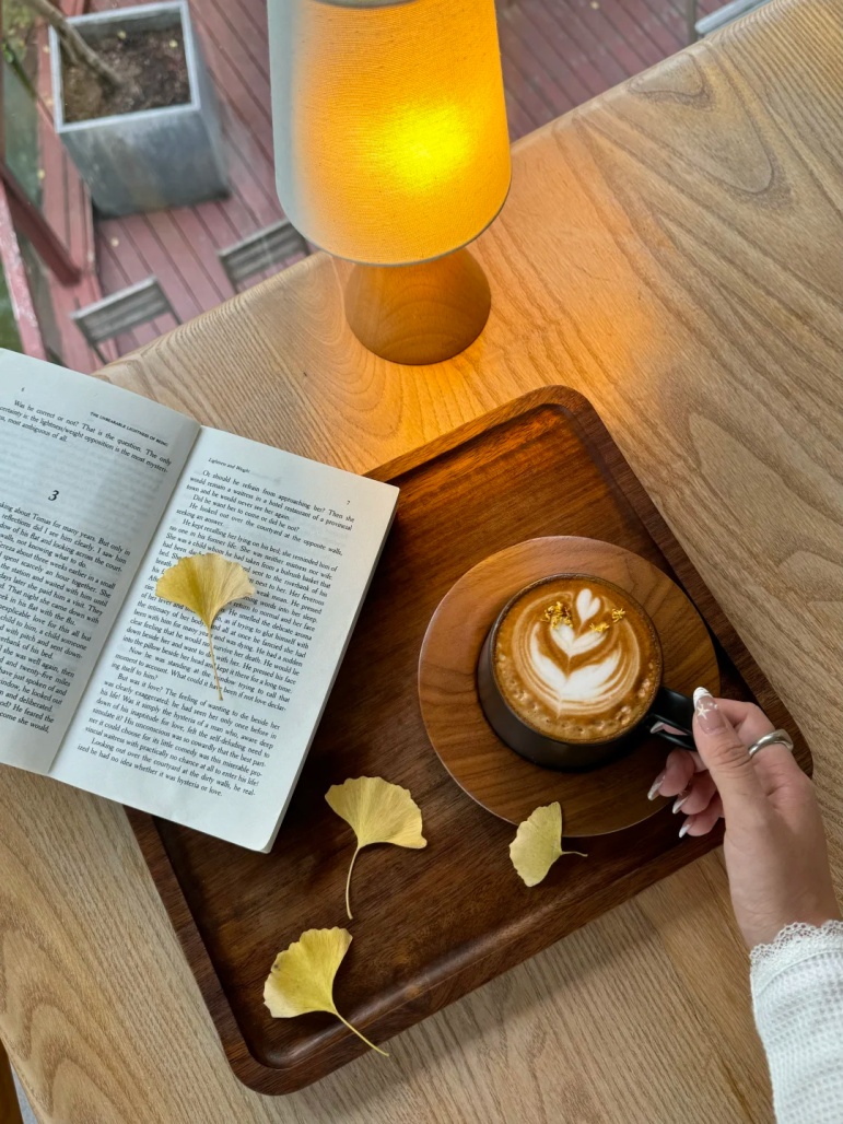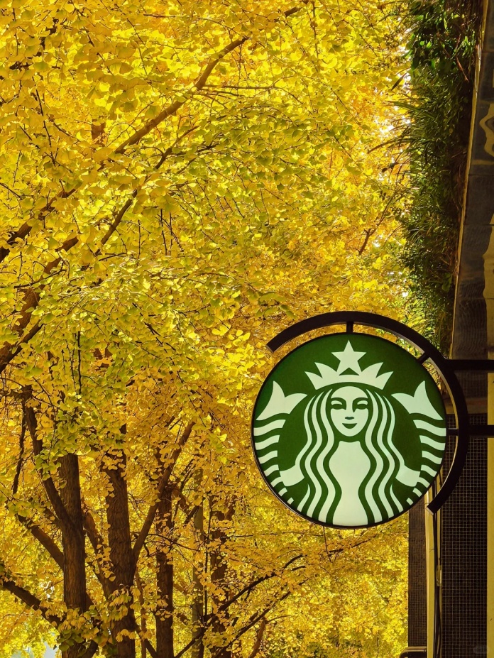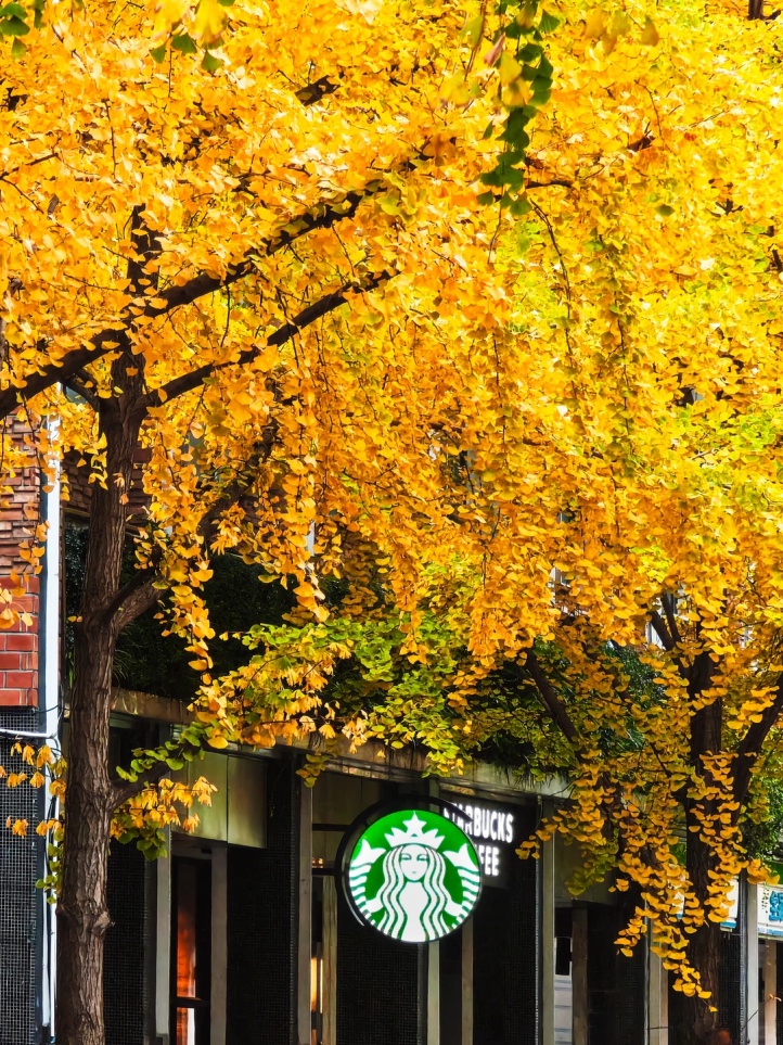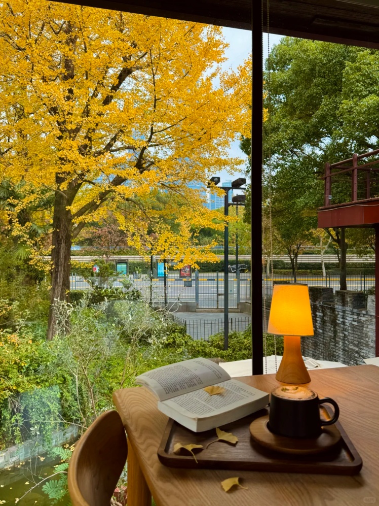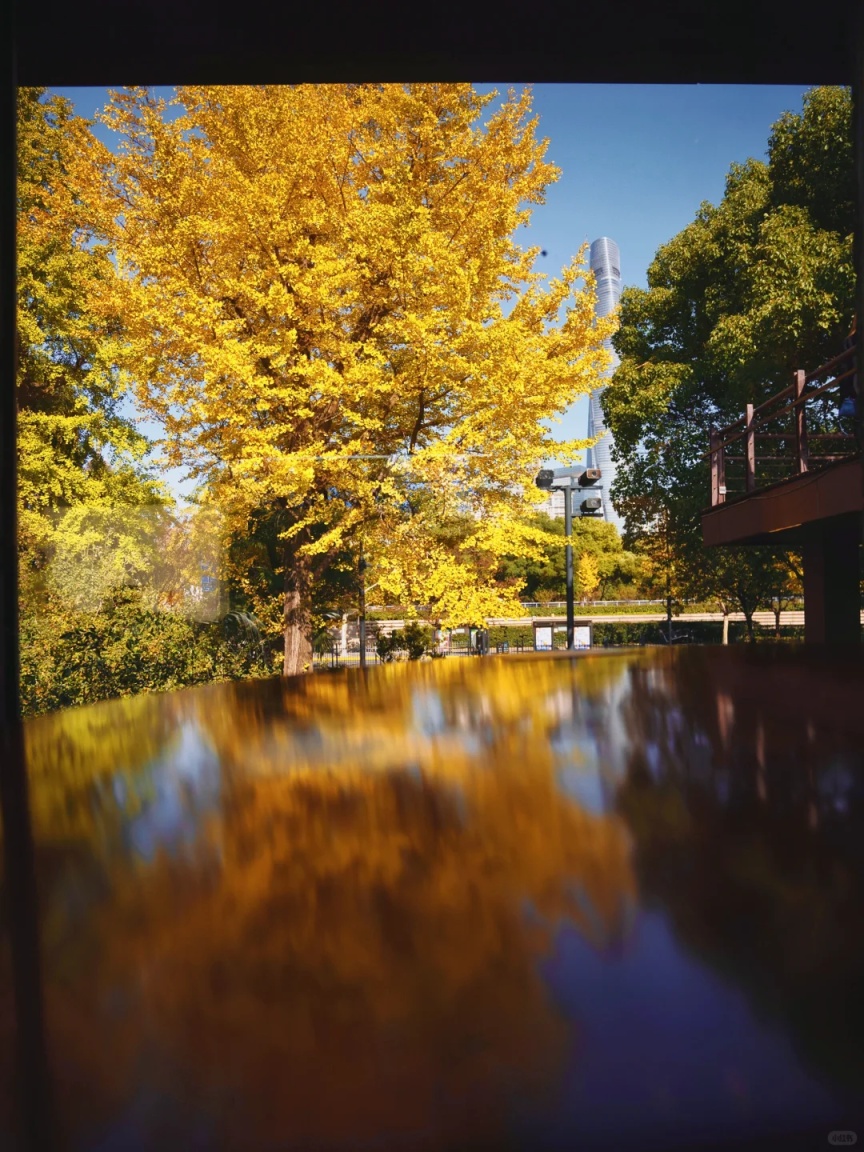 机位在咖啡店二层进门右手边,有两个位置可以拍到窗外的银杏